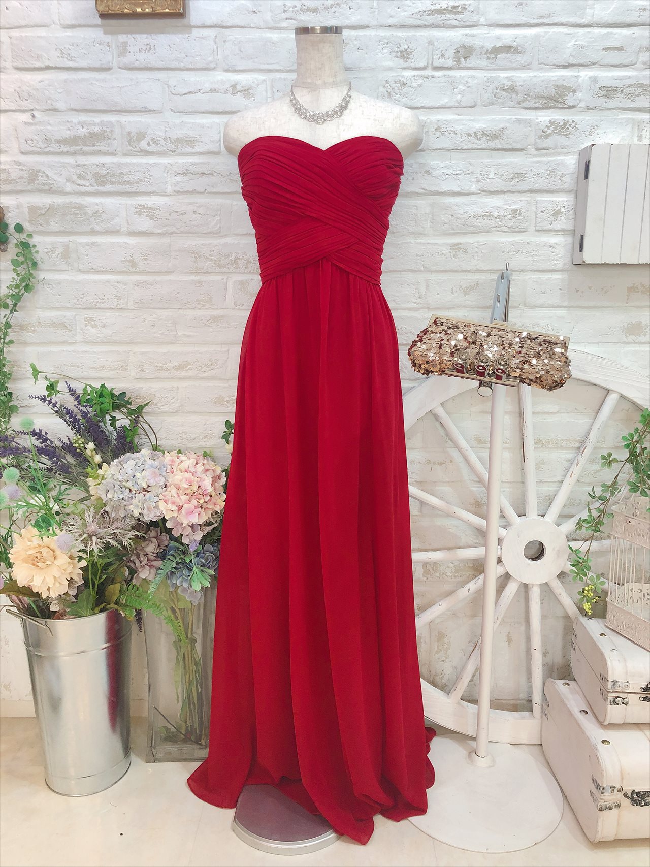 コーラルオレンジウェストスパンコール膝丈ベアドレ...