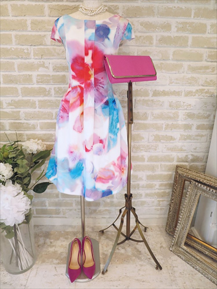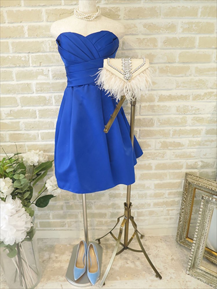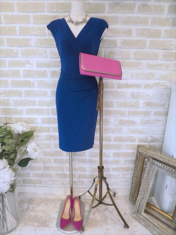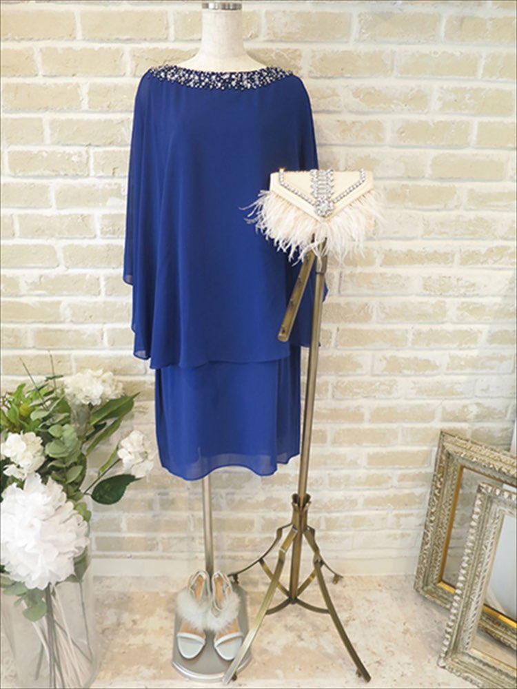ロイヤルブルーのチュールウエストリボンベアドレス