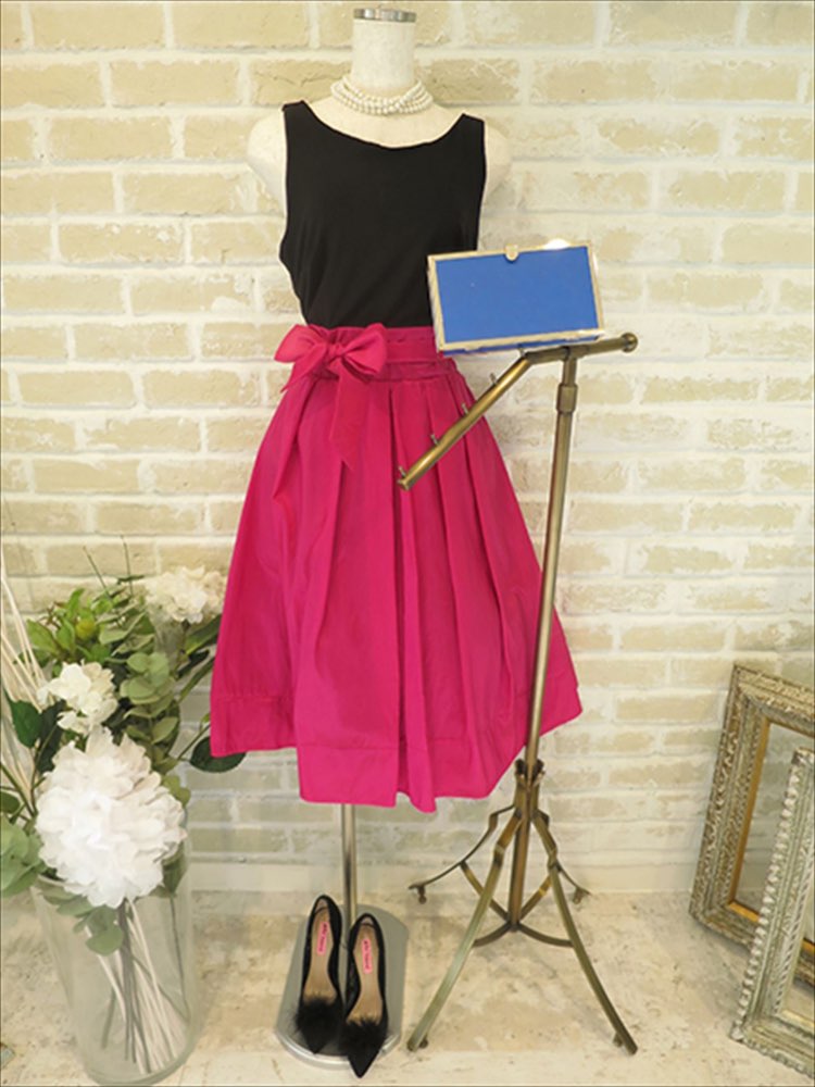 ベビーピンクのVカットウエスト切り替えノースリー...
