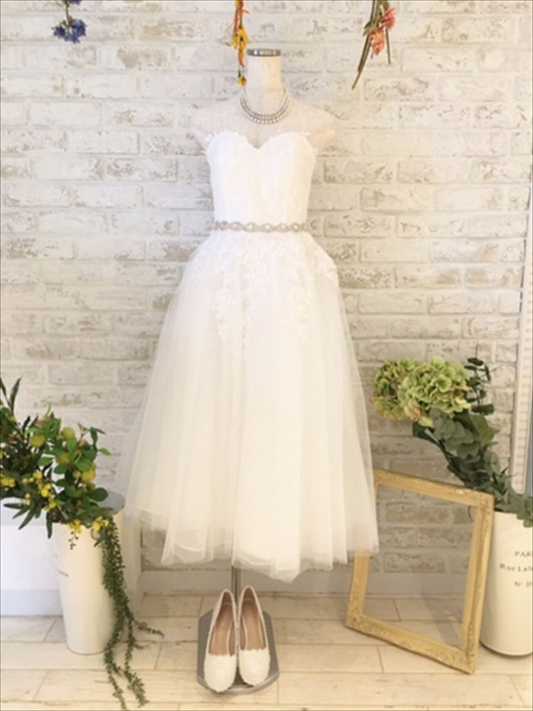 ★ウエストビジューミモレ丈ウェディングドレス(L...