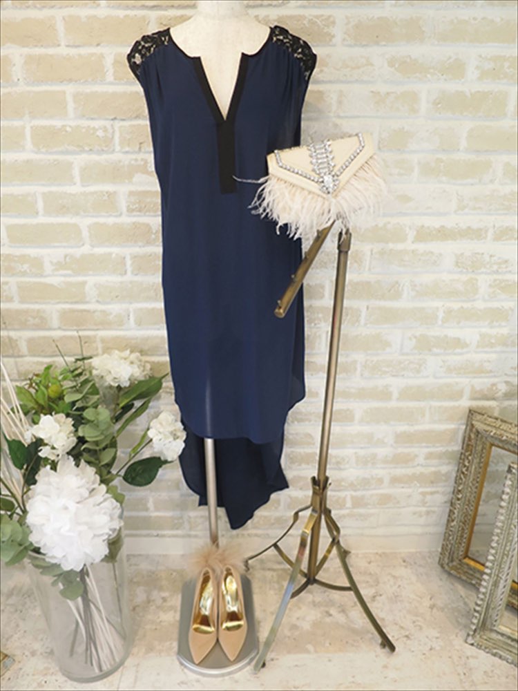 グリッター×リーフ柄袖付きソフトマーメイドドレスXL 13号