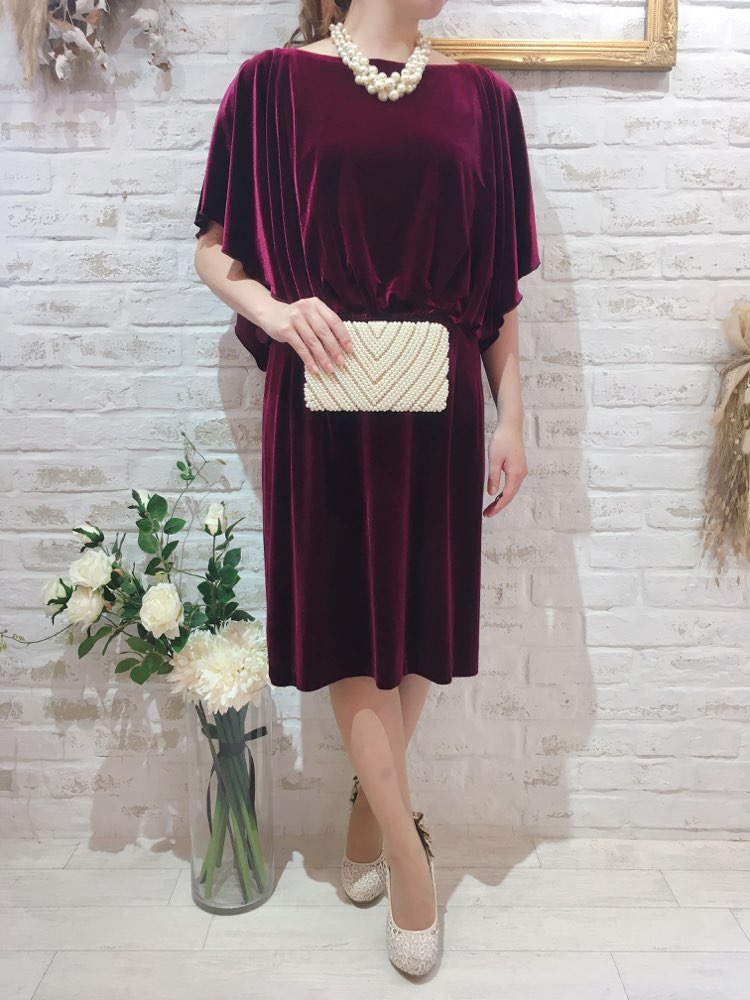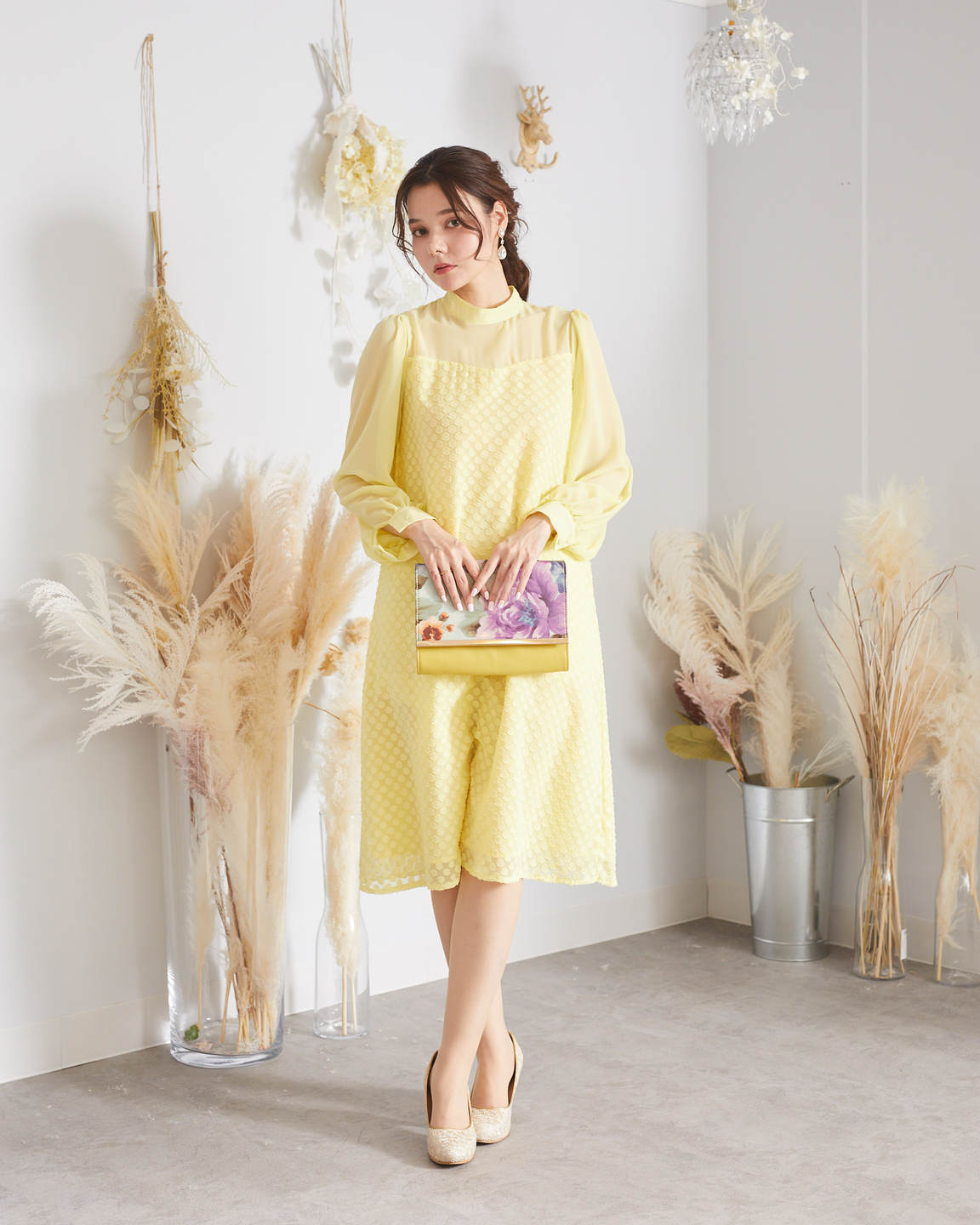 グリッター×リーフ柄袖付きソフトマーメイドドレス...