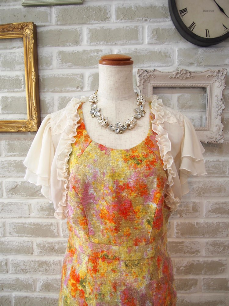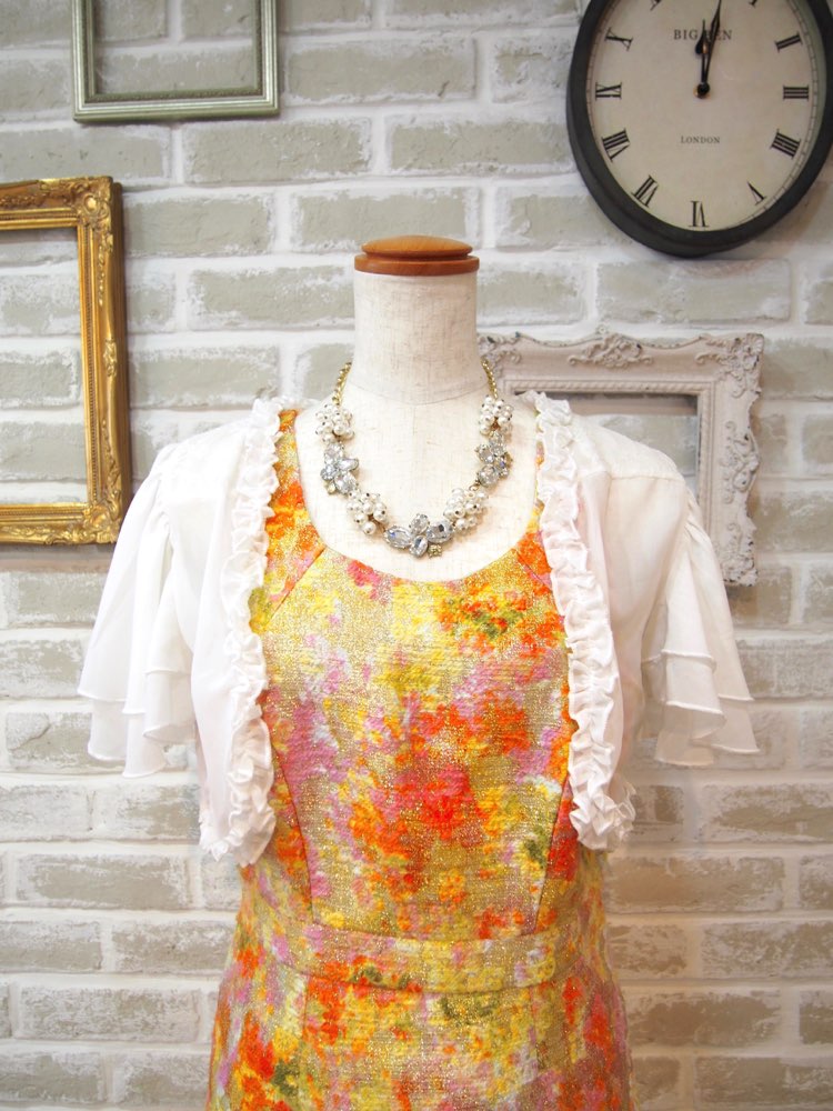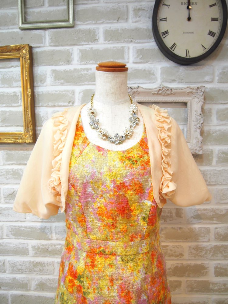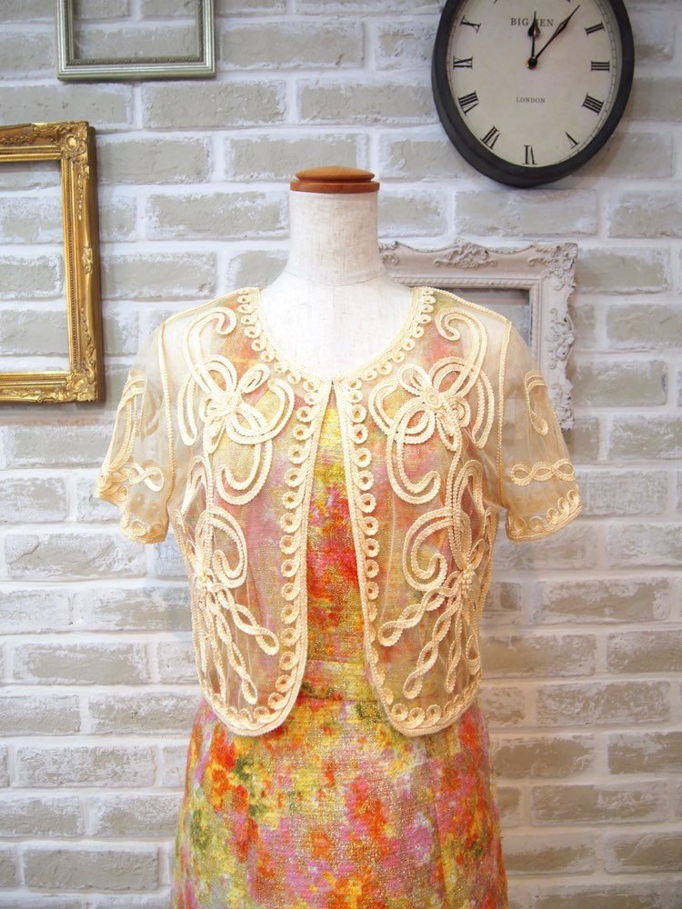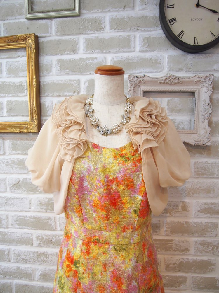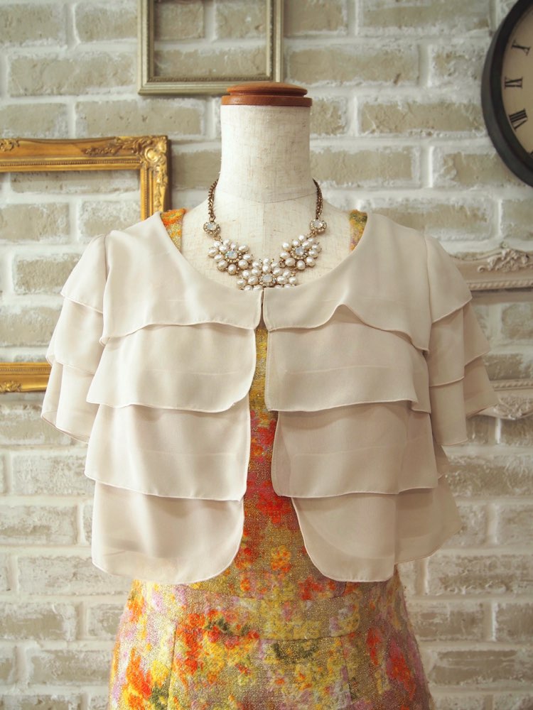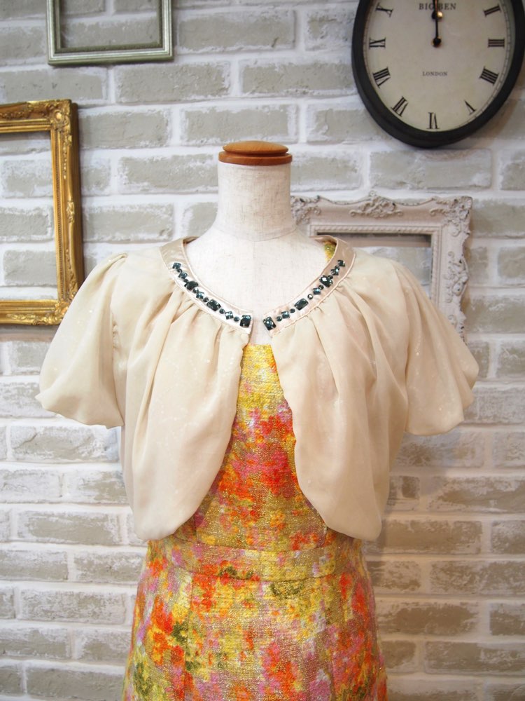 ベージュスパンコールバルーン袖グレービジューボレロ