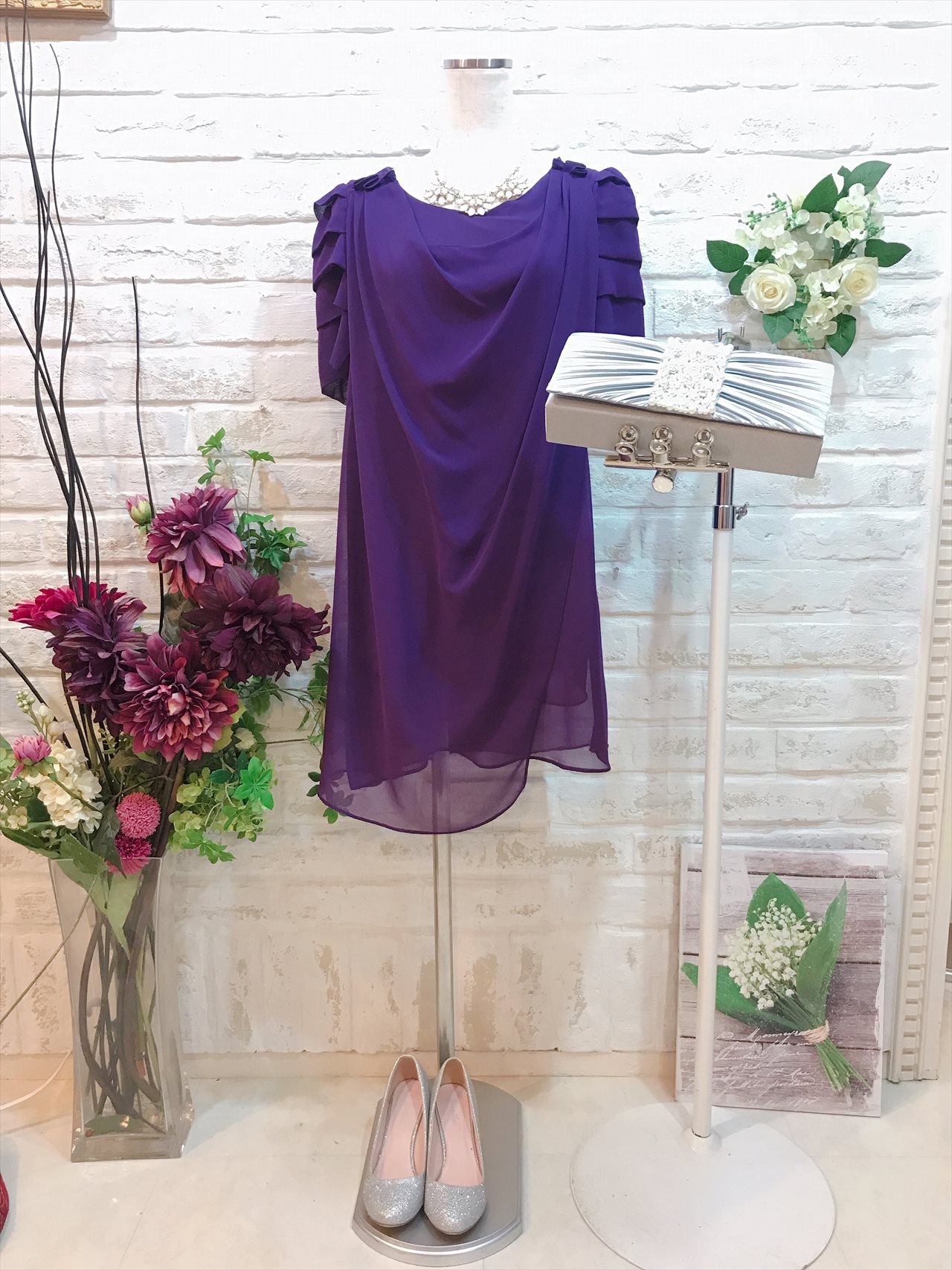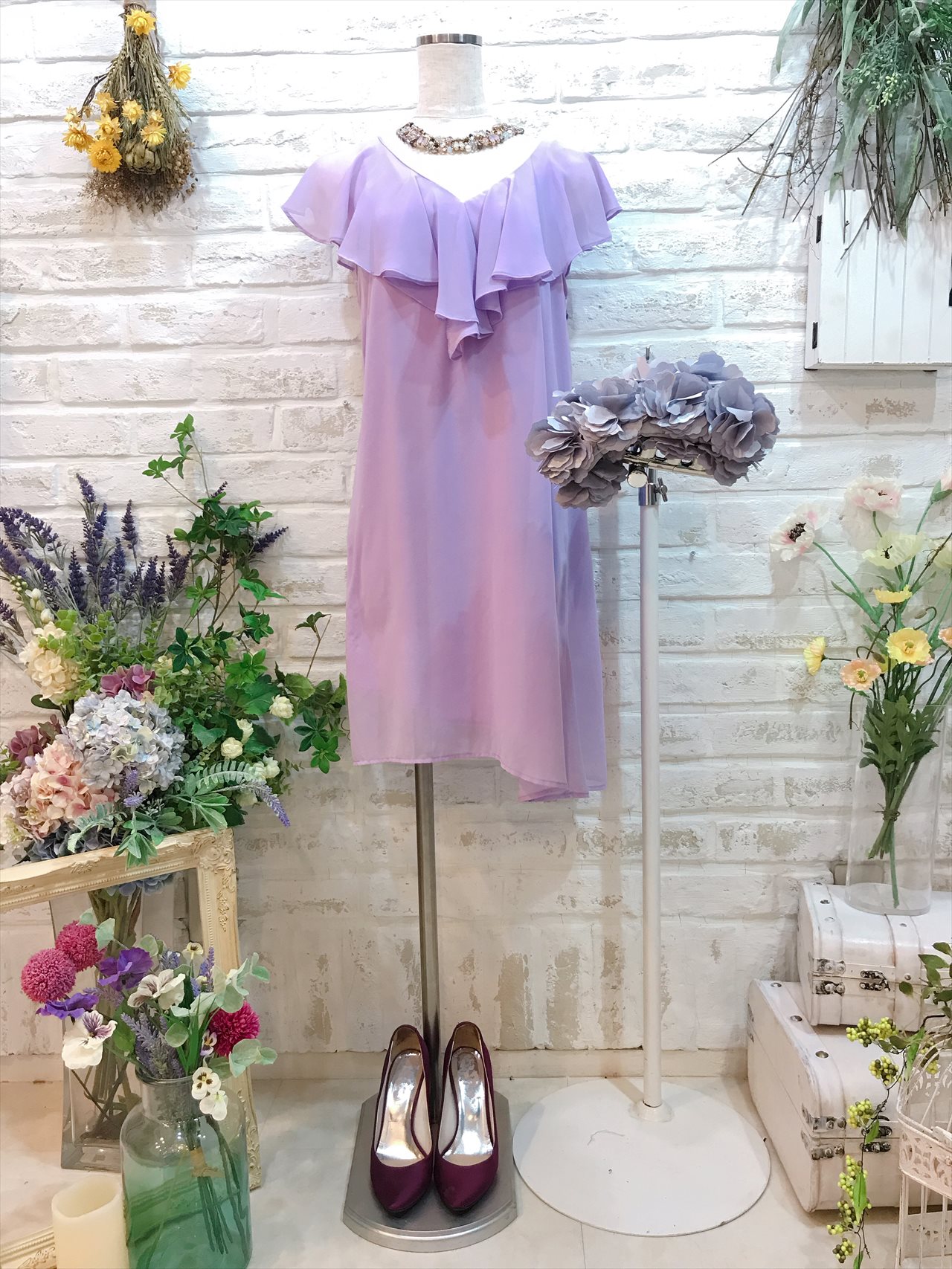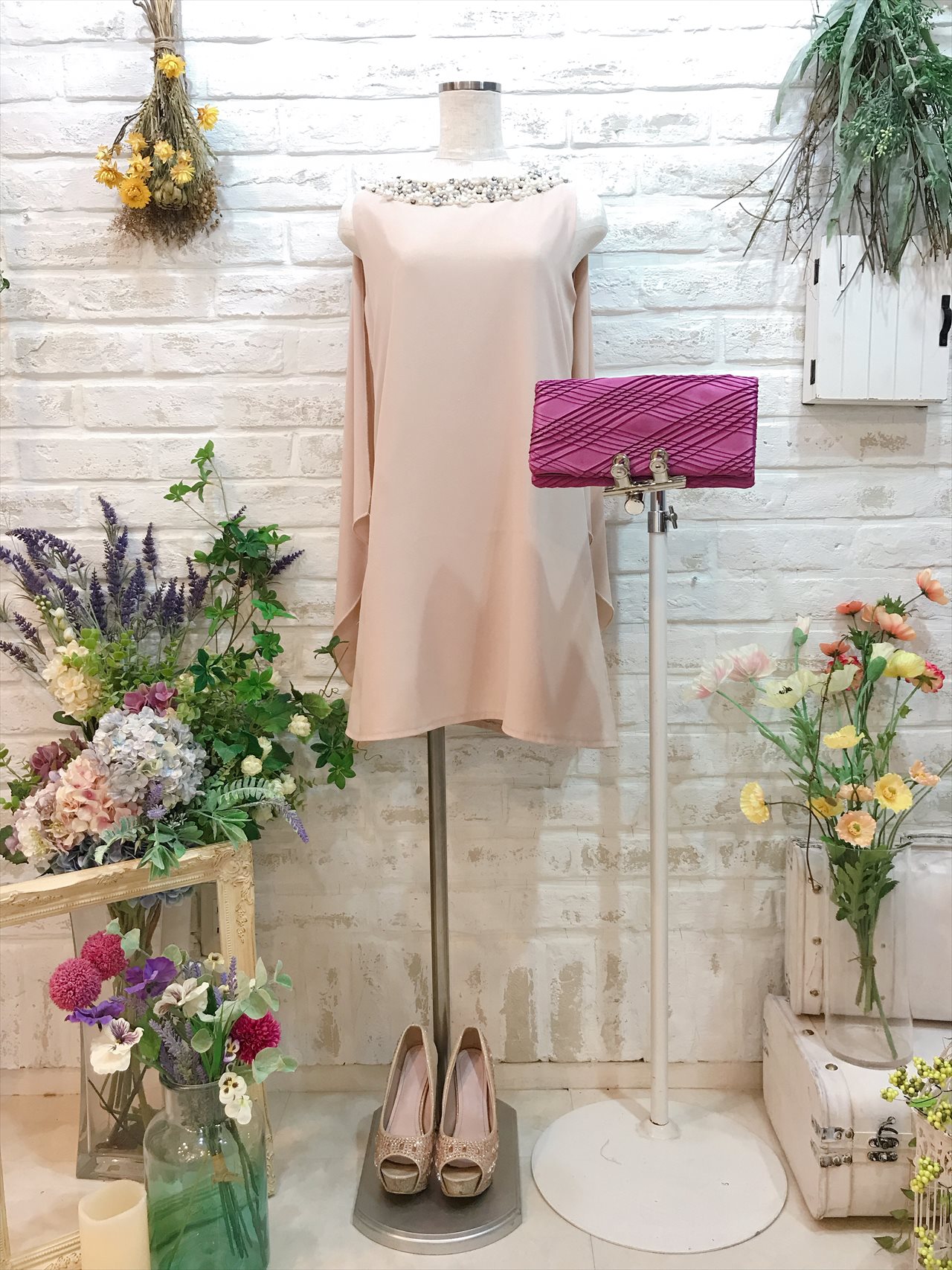オフホワイト胸元パール付きミモレ丈ベアドレス(特許付き)