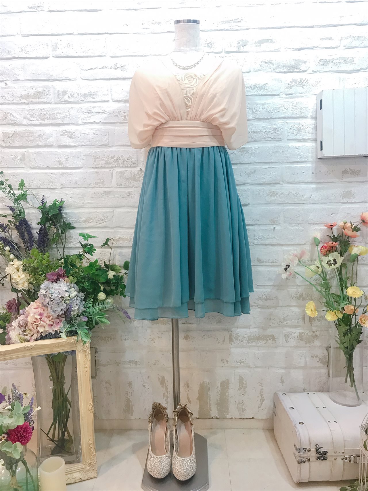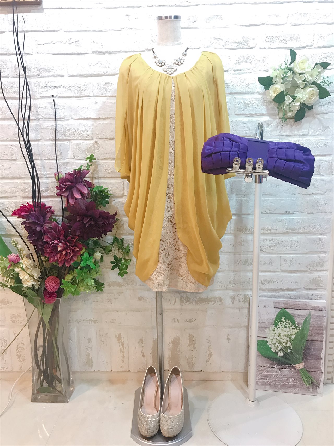 イエロー和柄ウェストリボンミニ丈ベアドレス
