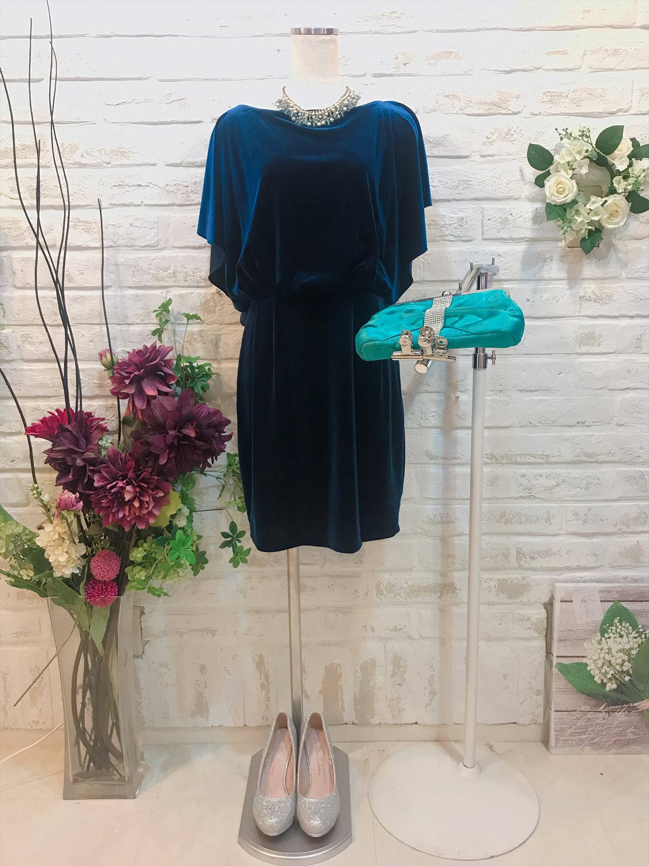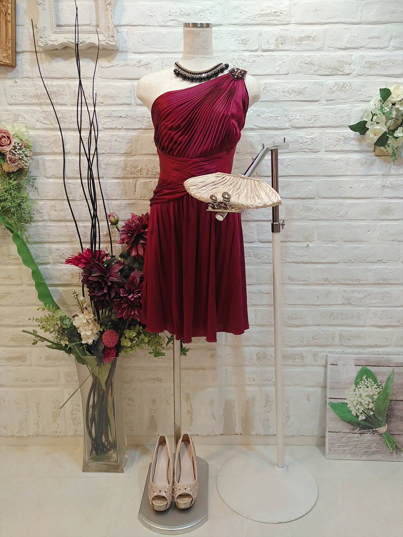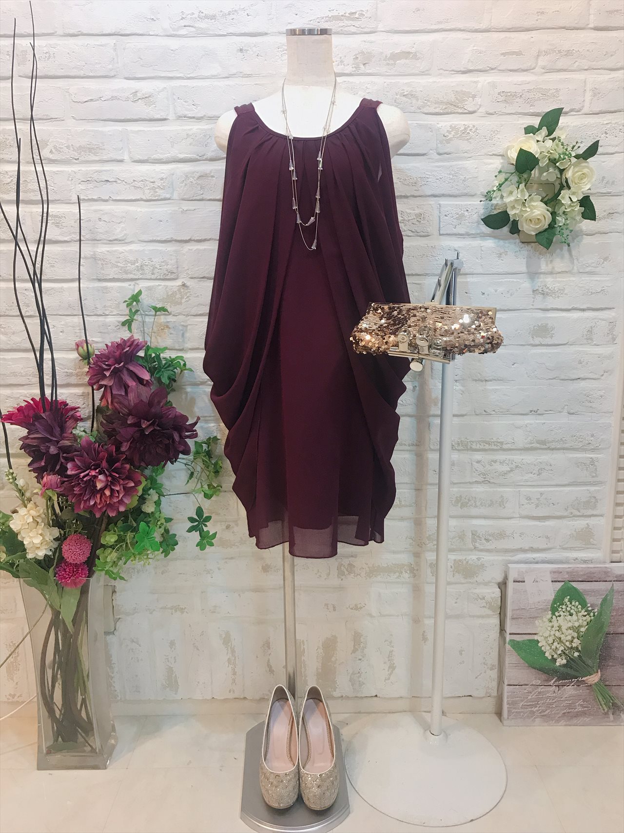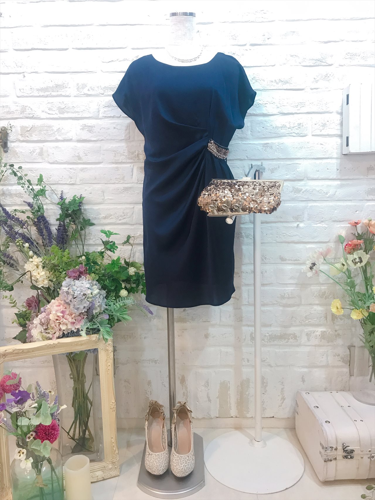 オフホワイト胸元パール付きミモレ丈ベアドレス(特...
