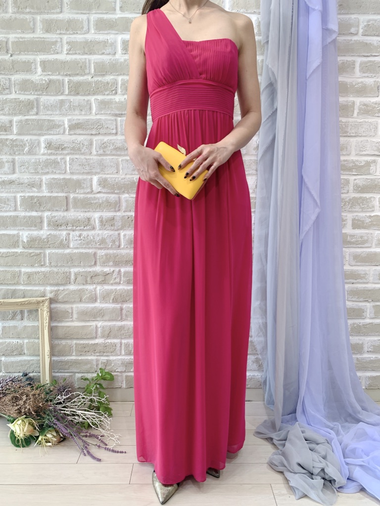 Laundry by SS マゼンタワンショルダースリットロングドレス