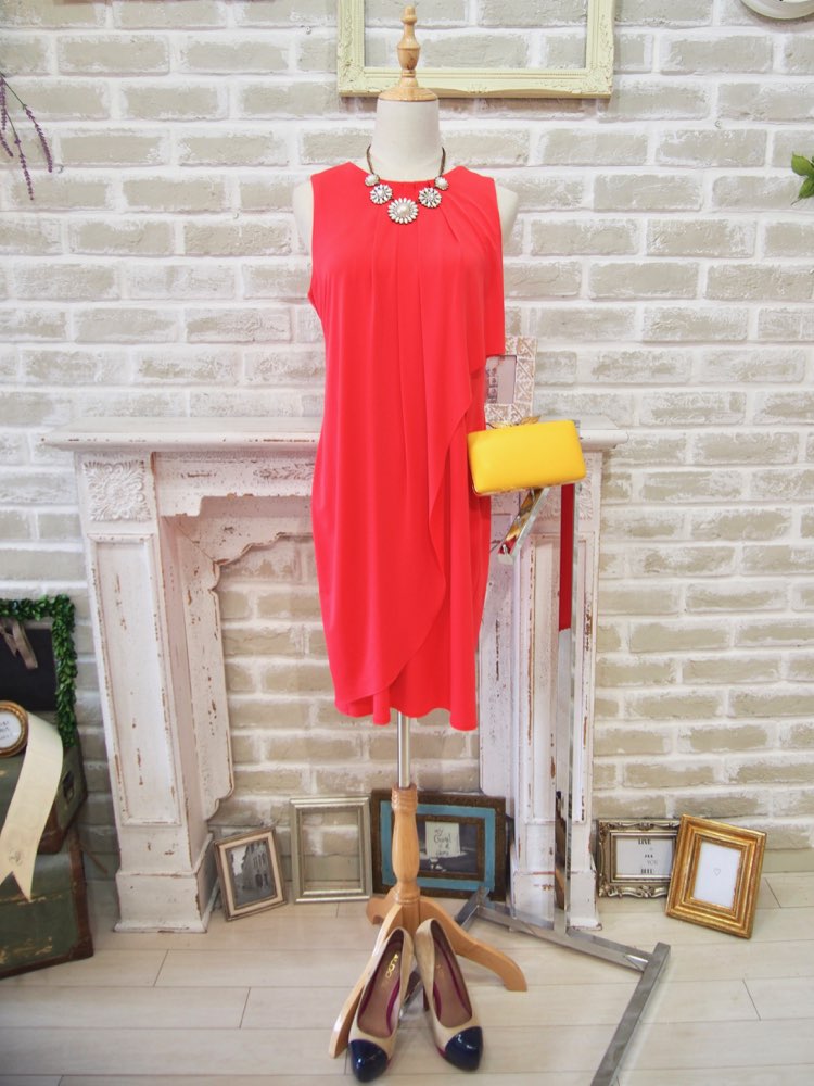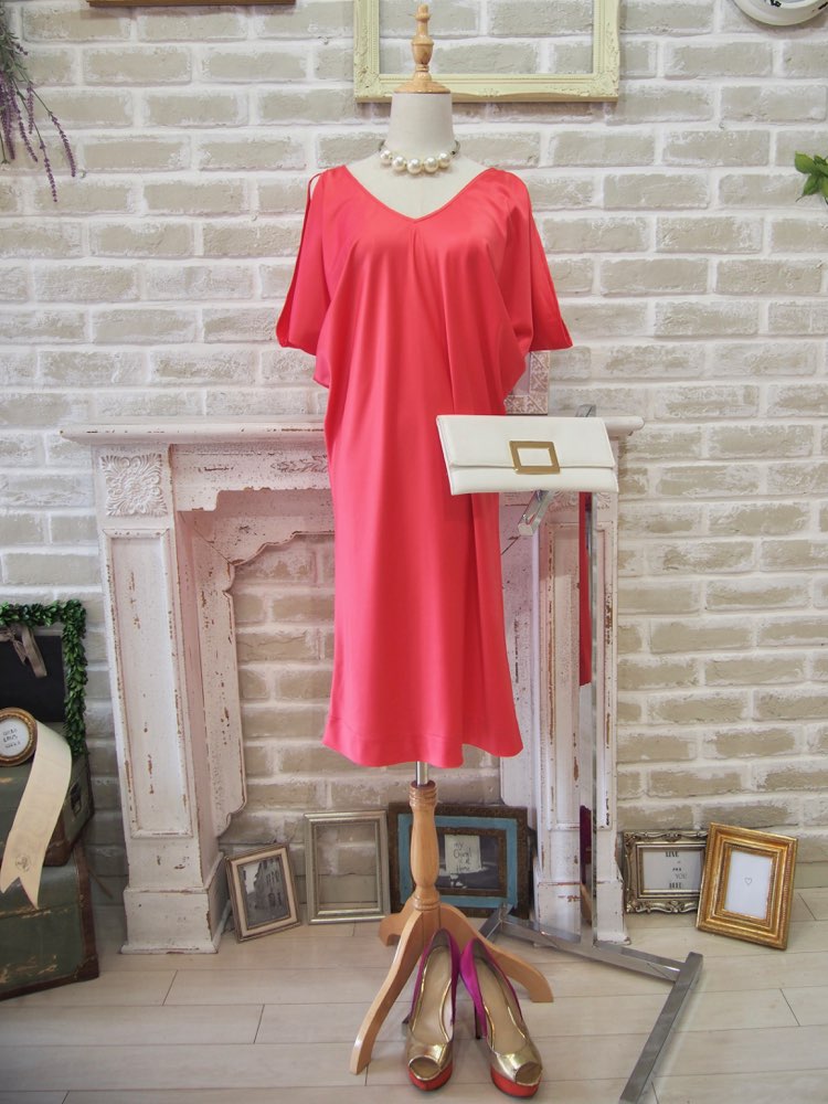 ★サーモンピンクリボンデザインバルーンSKミニドレス