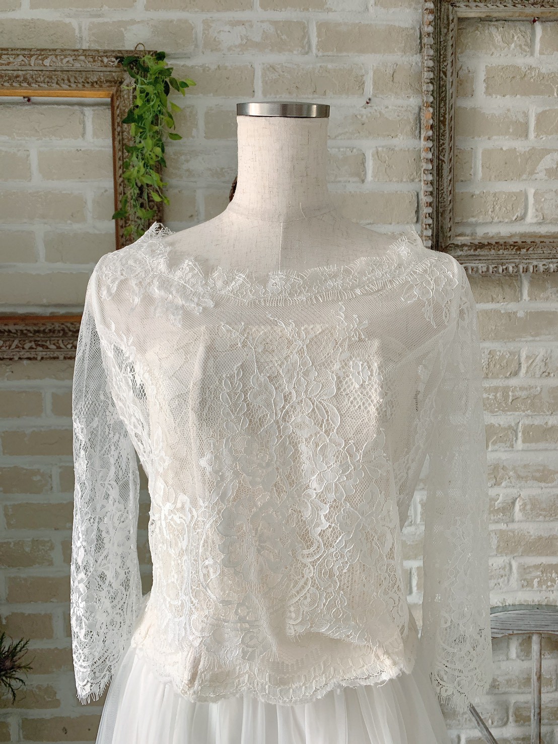 花嫁ウェディング用二の腕きになる方七分丈スリーブ総レース後ろ編み上げボレロ
