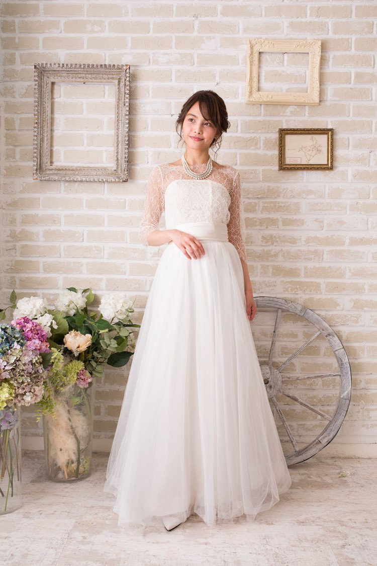 YNSWEDDINGフロントチュールスレンダードレス