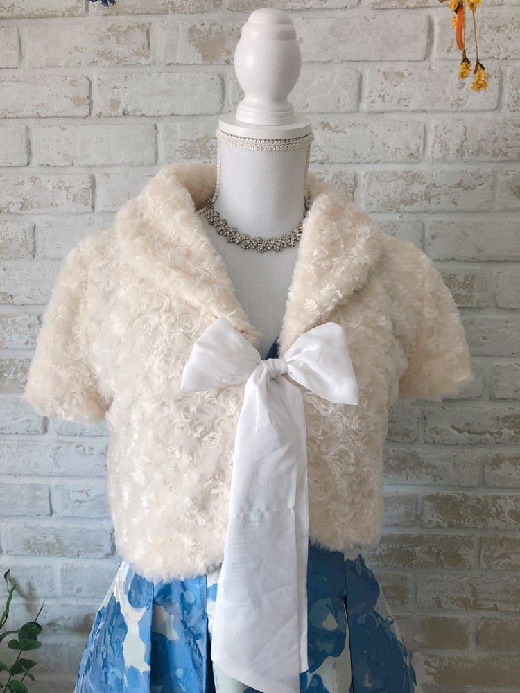 丈間短めホワイトファーボレロ