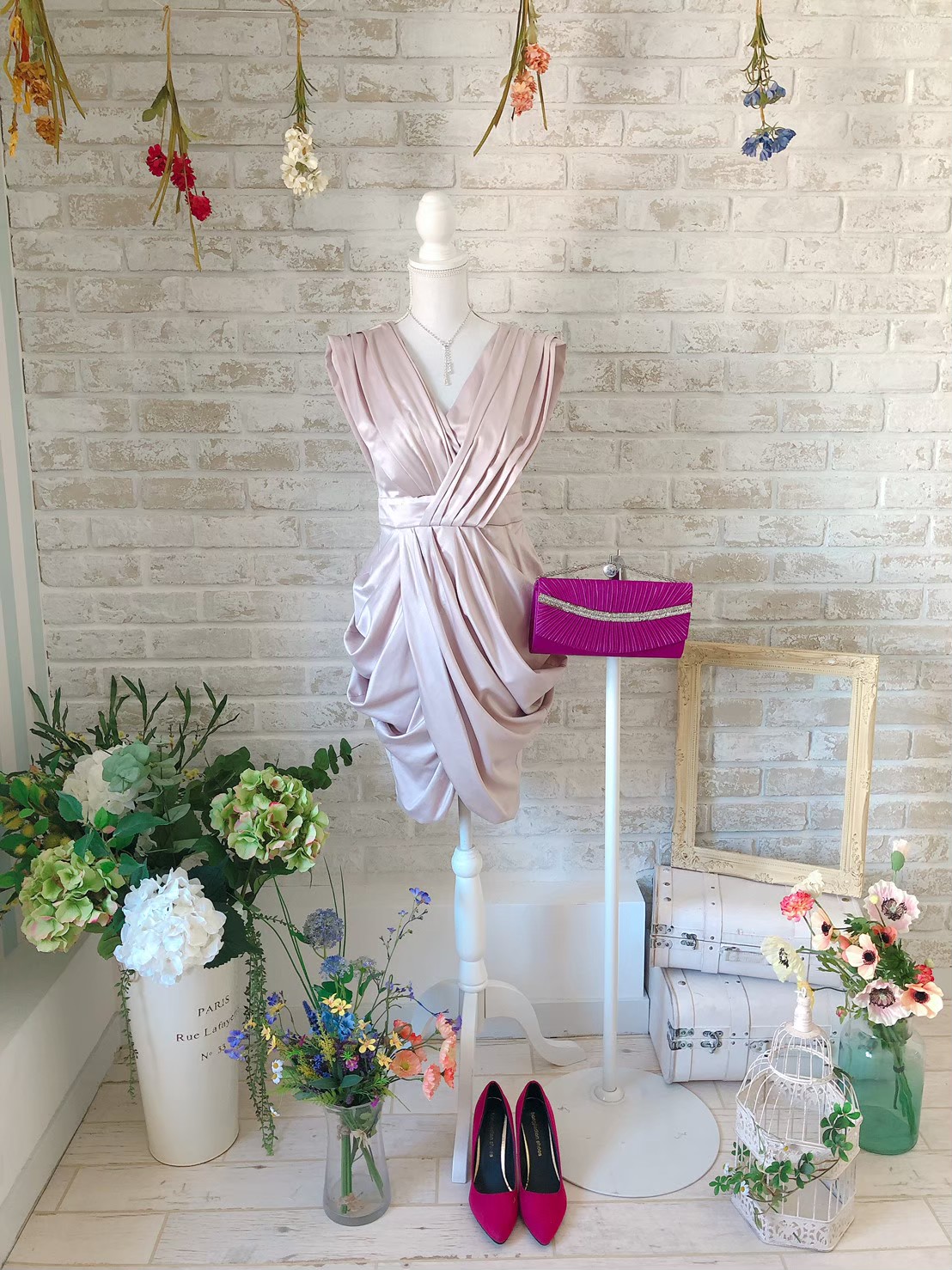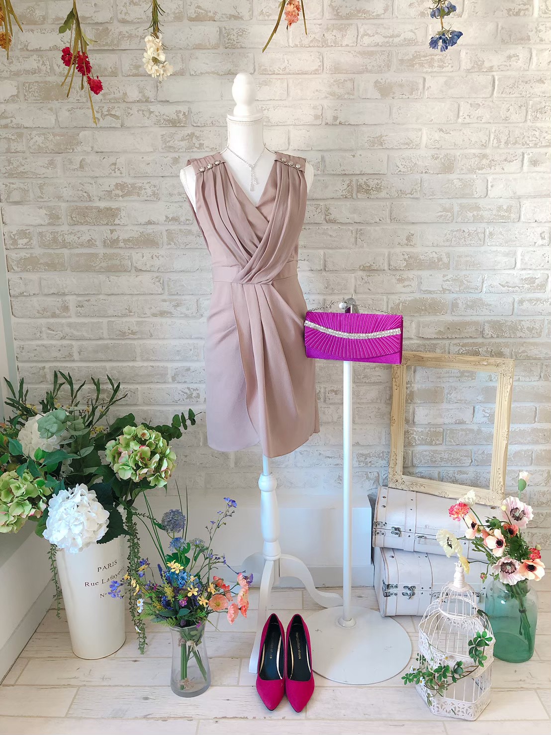パステルパープルアメリカンスリーブ花柄レースドレ...