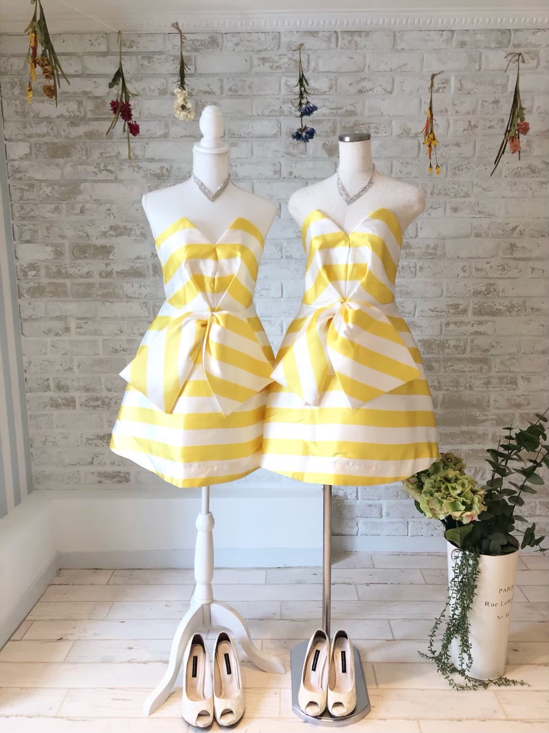 パステルイエロー・肩ビジュードレス