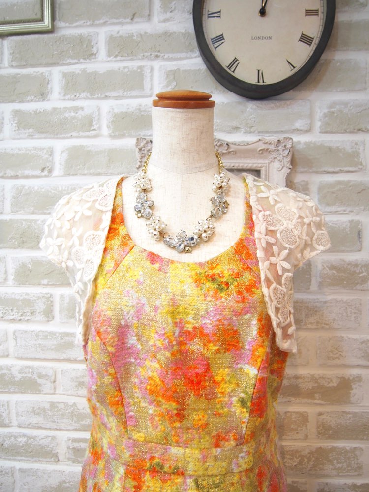 コレクション・インポートピンクベージュキラキララメグリッター大柄Aラインオフショルダードレス