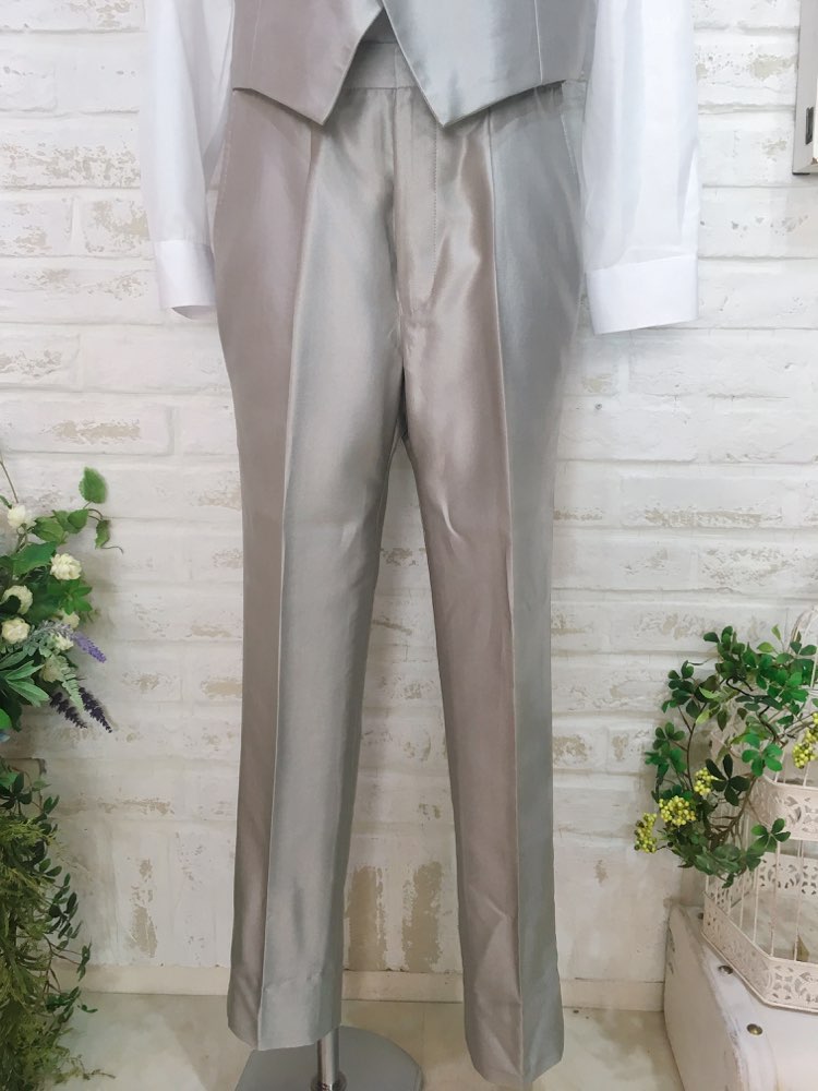 ホワイト×シルバーパイピングタキシードセットパンツS