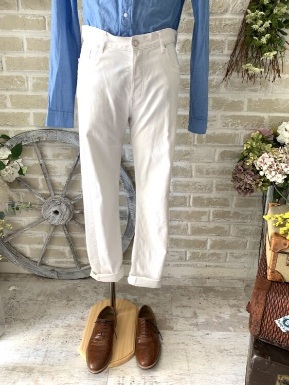 ベージュ×ピンクベージュ千鳥格子柄ホワイトパイピンクパンツ S
