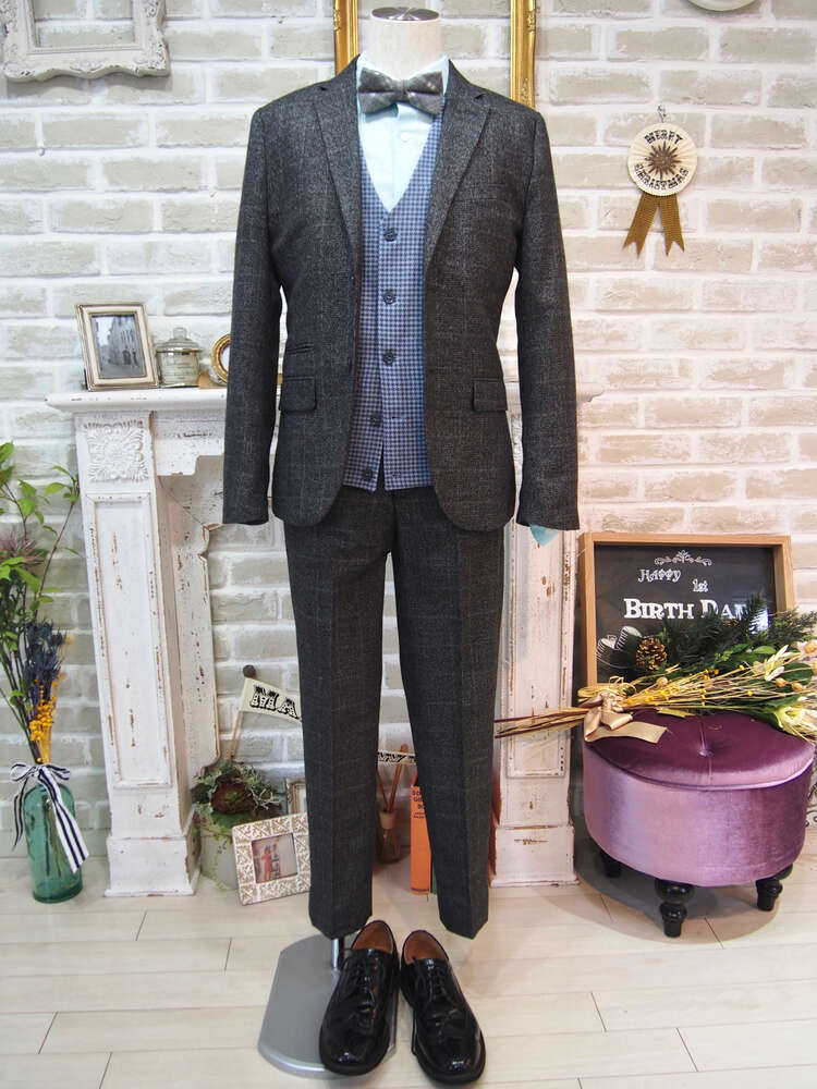 【スリーピースセットアップ】 (38)グレーチェックタキシード