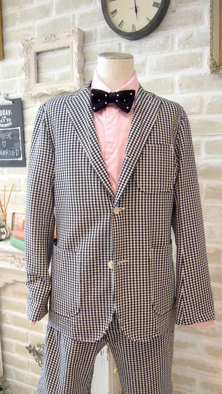 【セットアップ】M(38) グレー×ブラックチェックタキシード