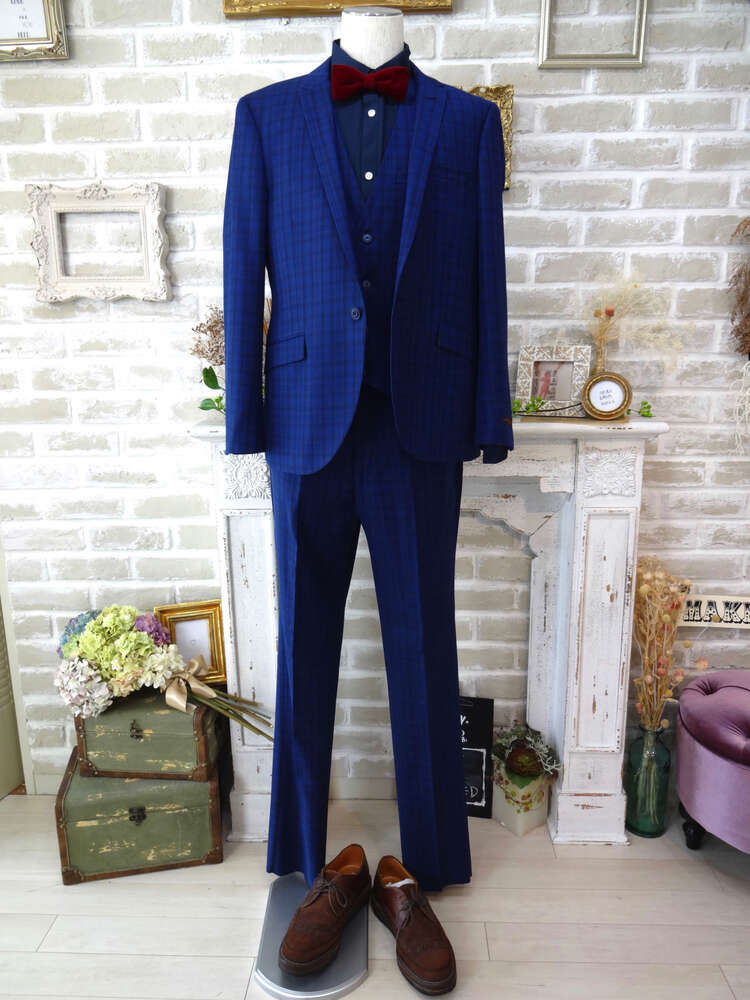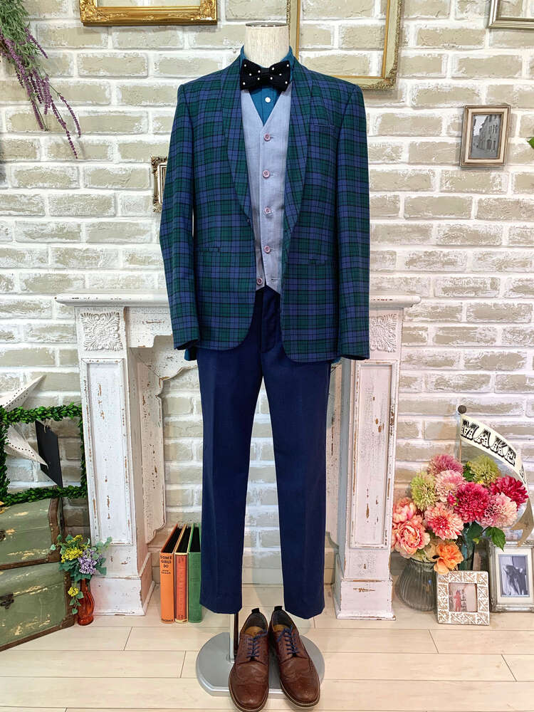 【スリーピースセットアップ】 M38 ネイビー×グレーチェックタキシード
