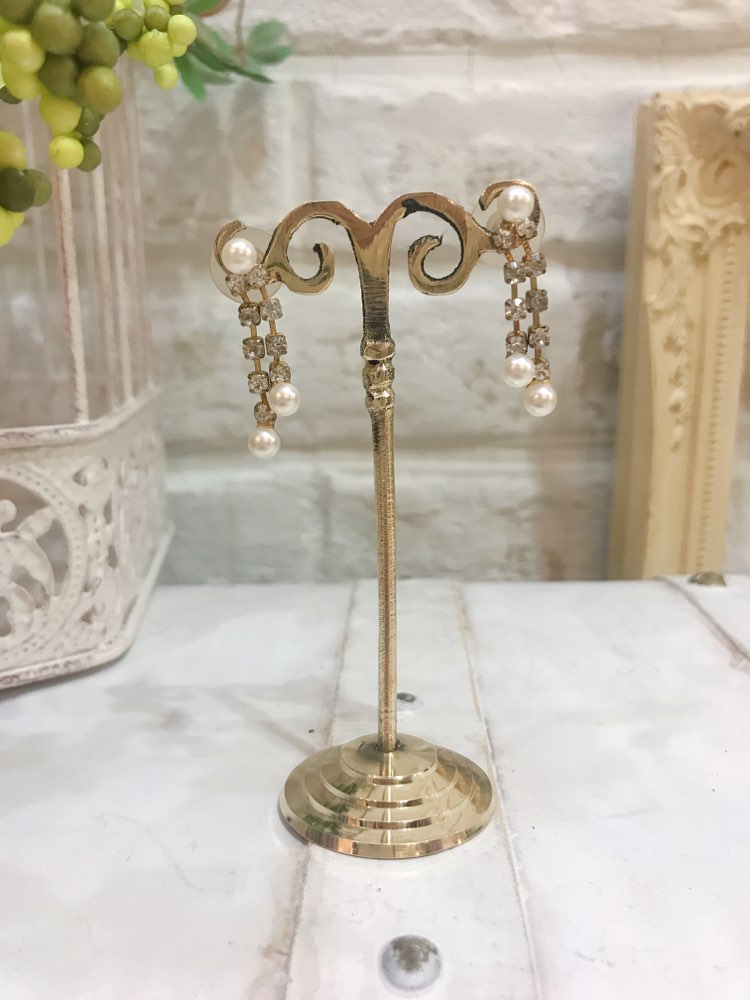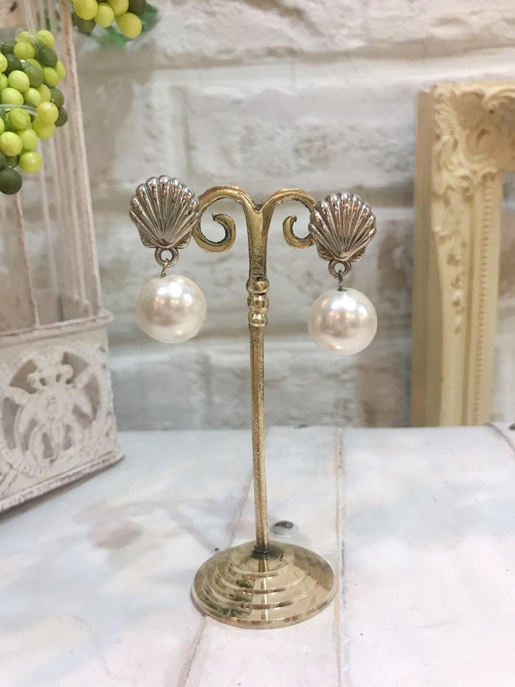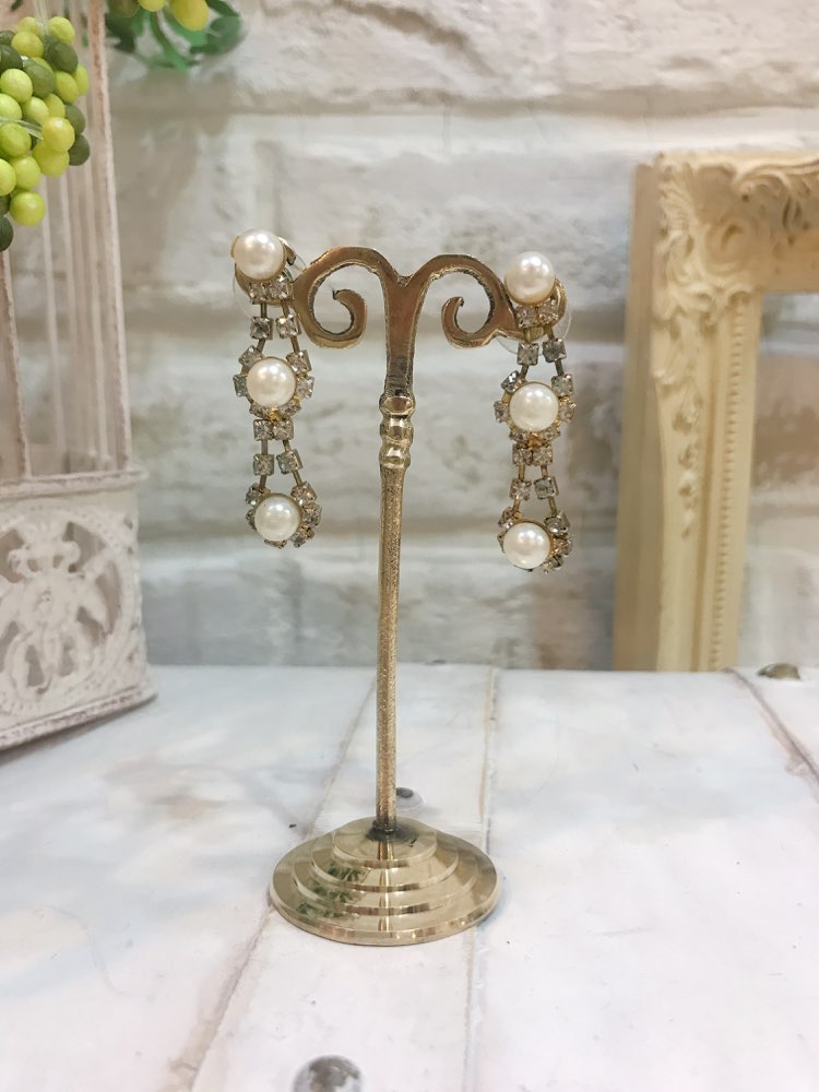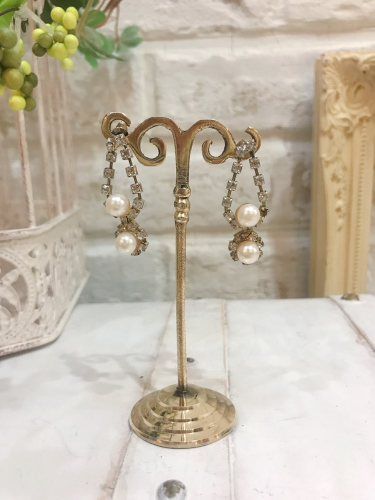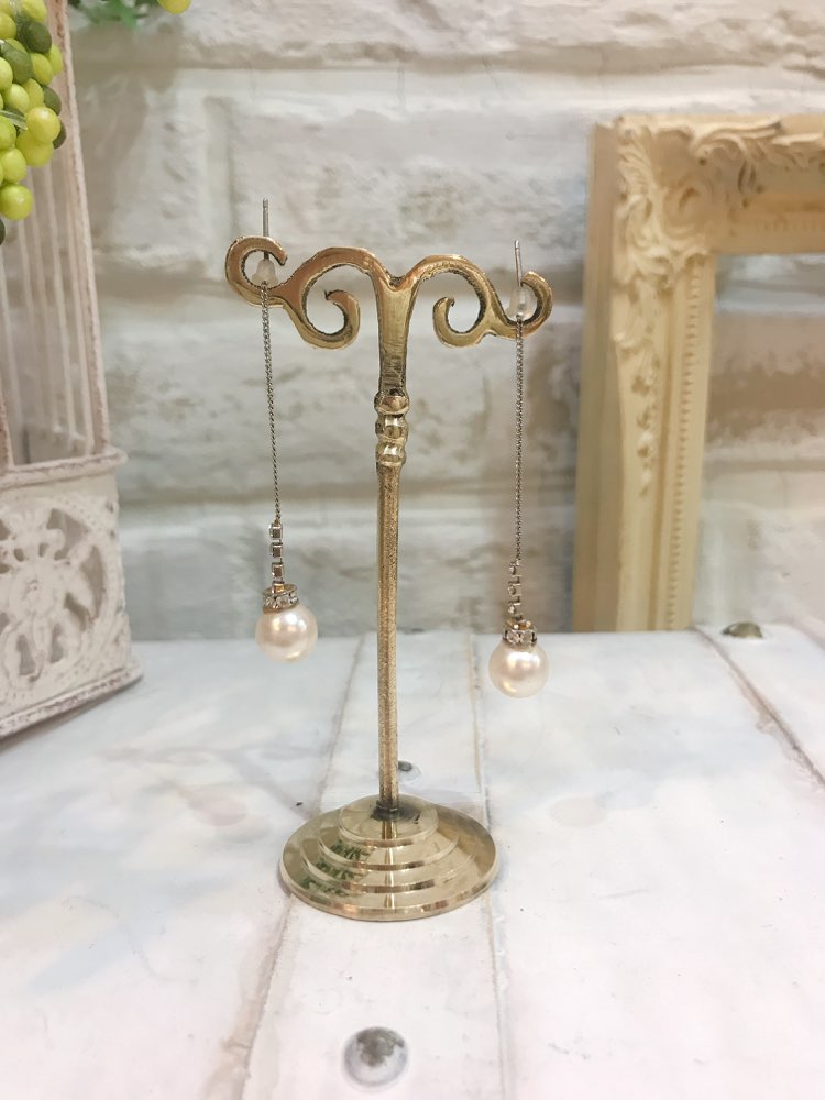 シルバーひし形ダイヤパール1粒たれさがりピアス