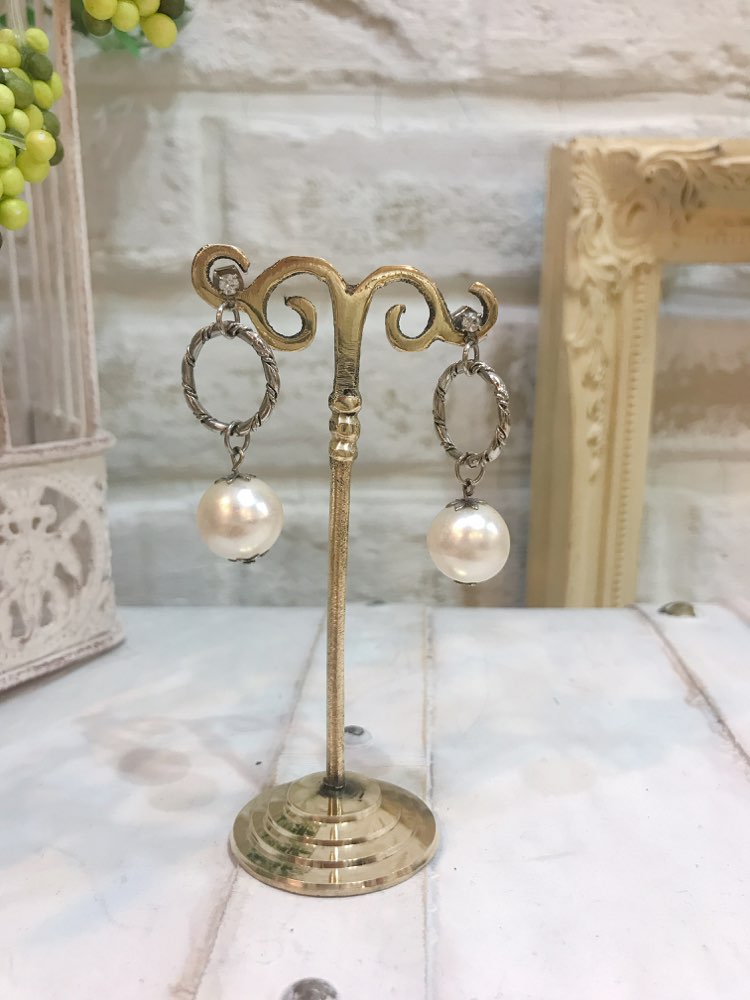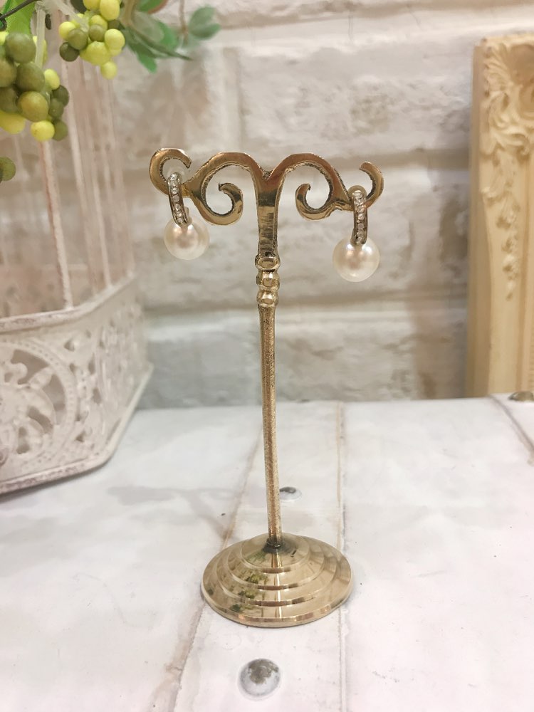 ホワイトパール1粒×1粒ダイヤフックピアス