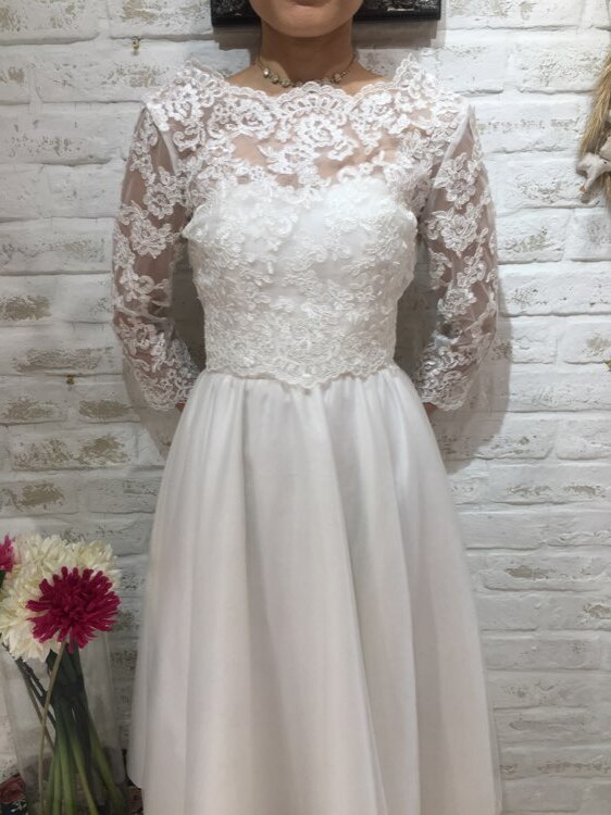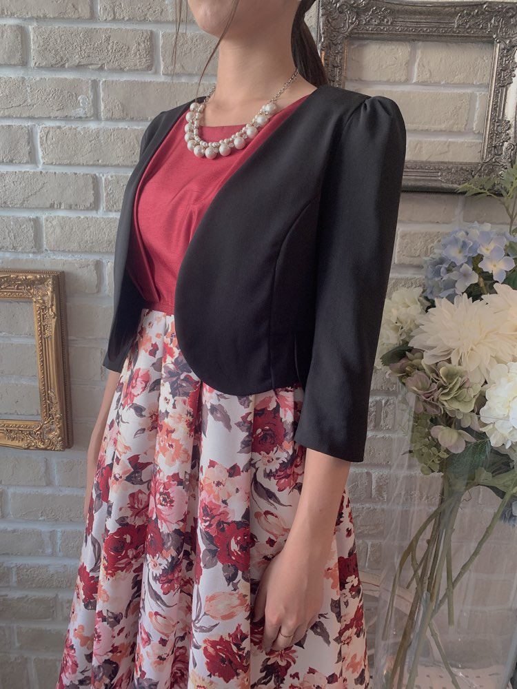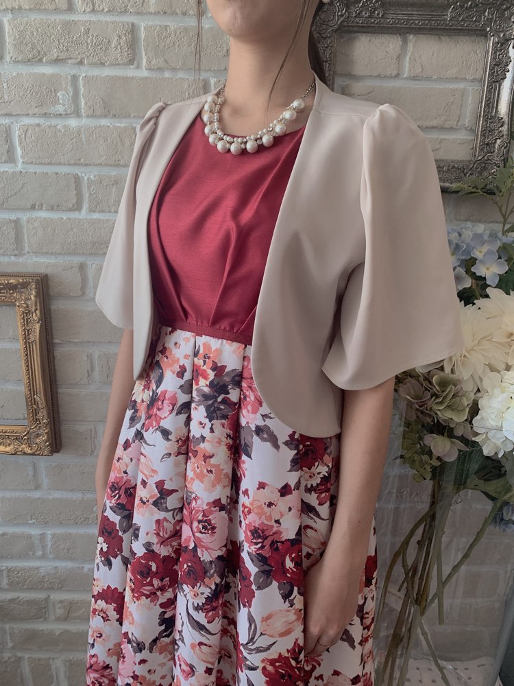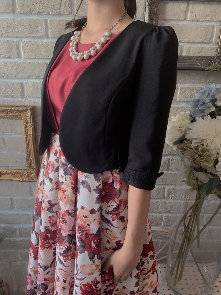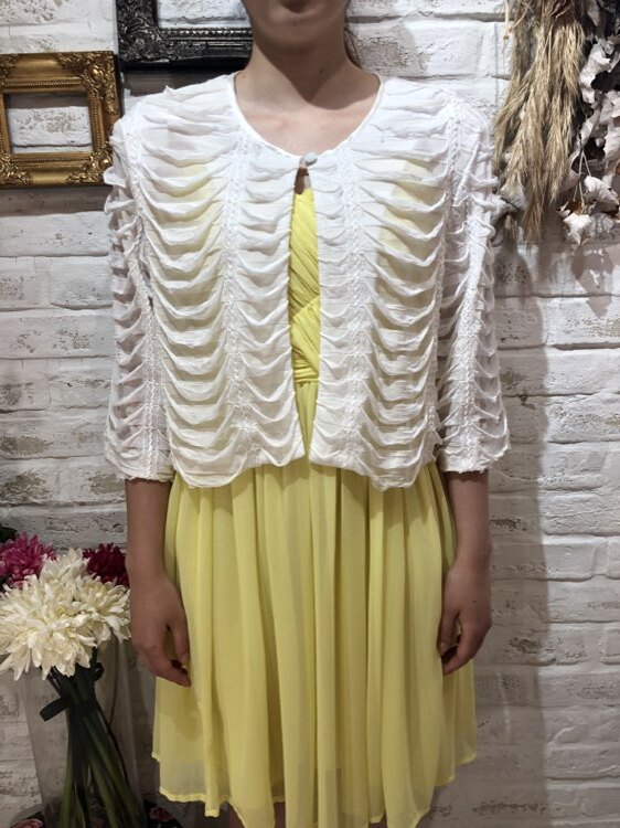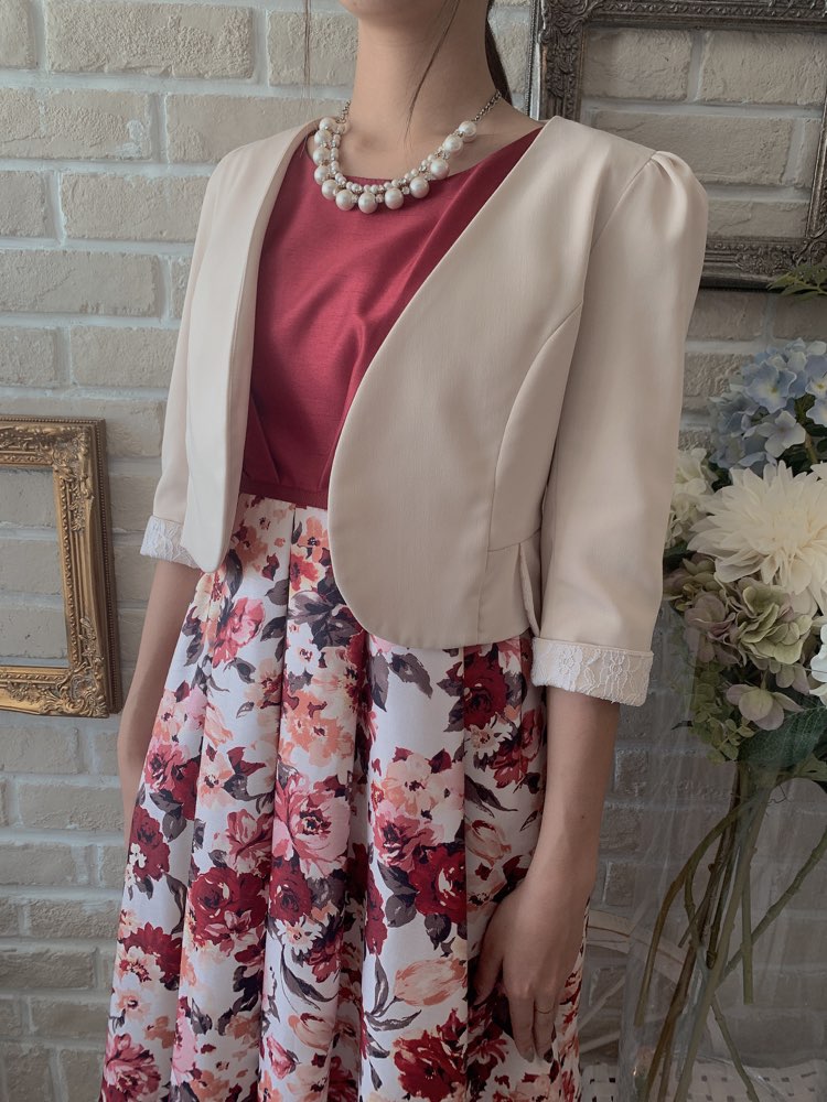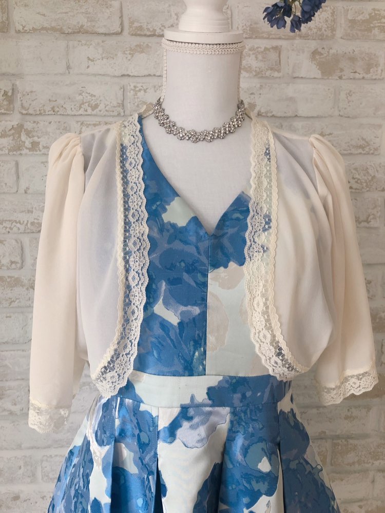 7分袖ホワイトレース後ろボタンウェディングボレロ