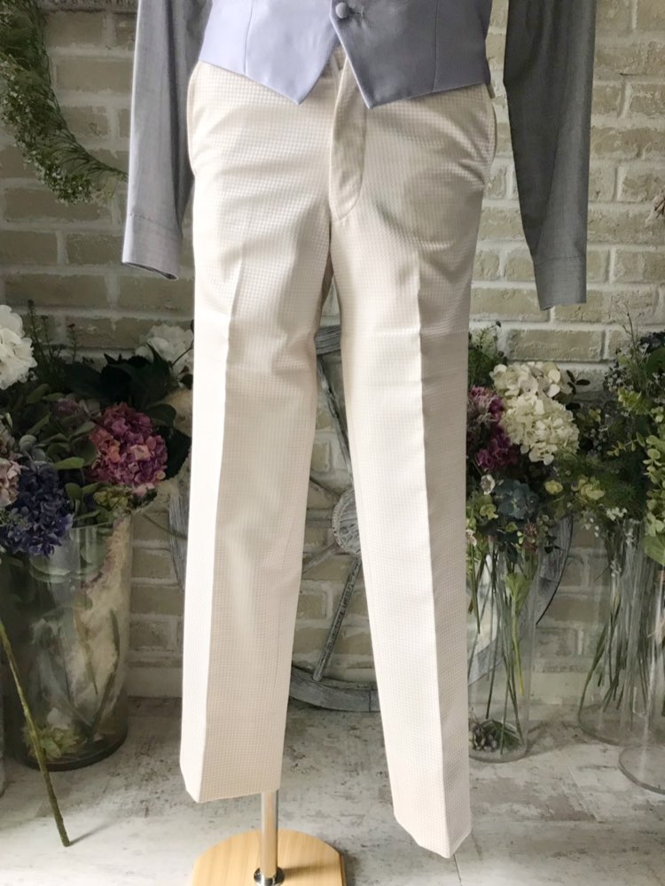 ベージュ×ピンクベージュ千鳥格子柄ホワイトパイピ...
