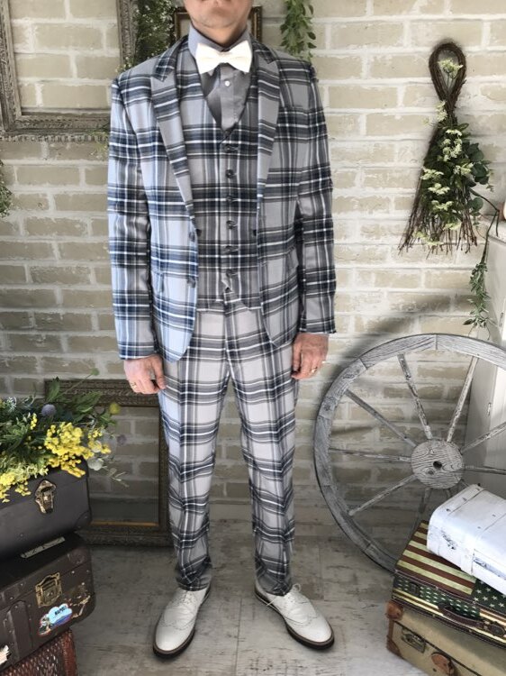 asosグレー×ブルーのタータンチェック柄パンツ 31