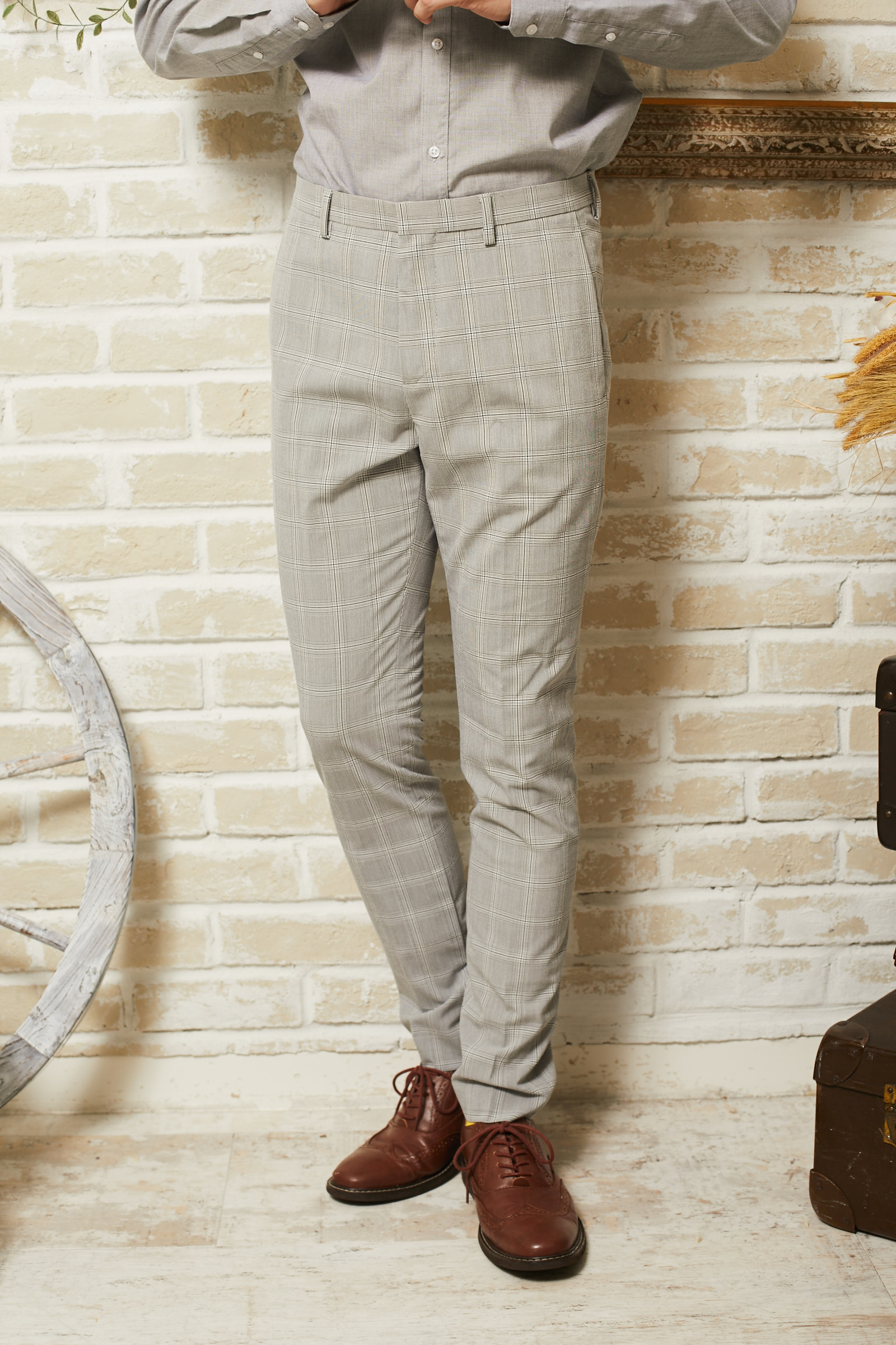 asosグレー×ブルーのタータンチェック柄パンツ...