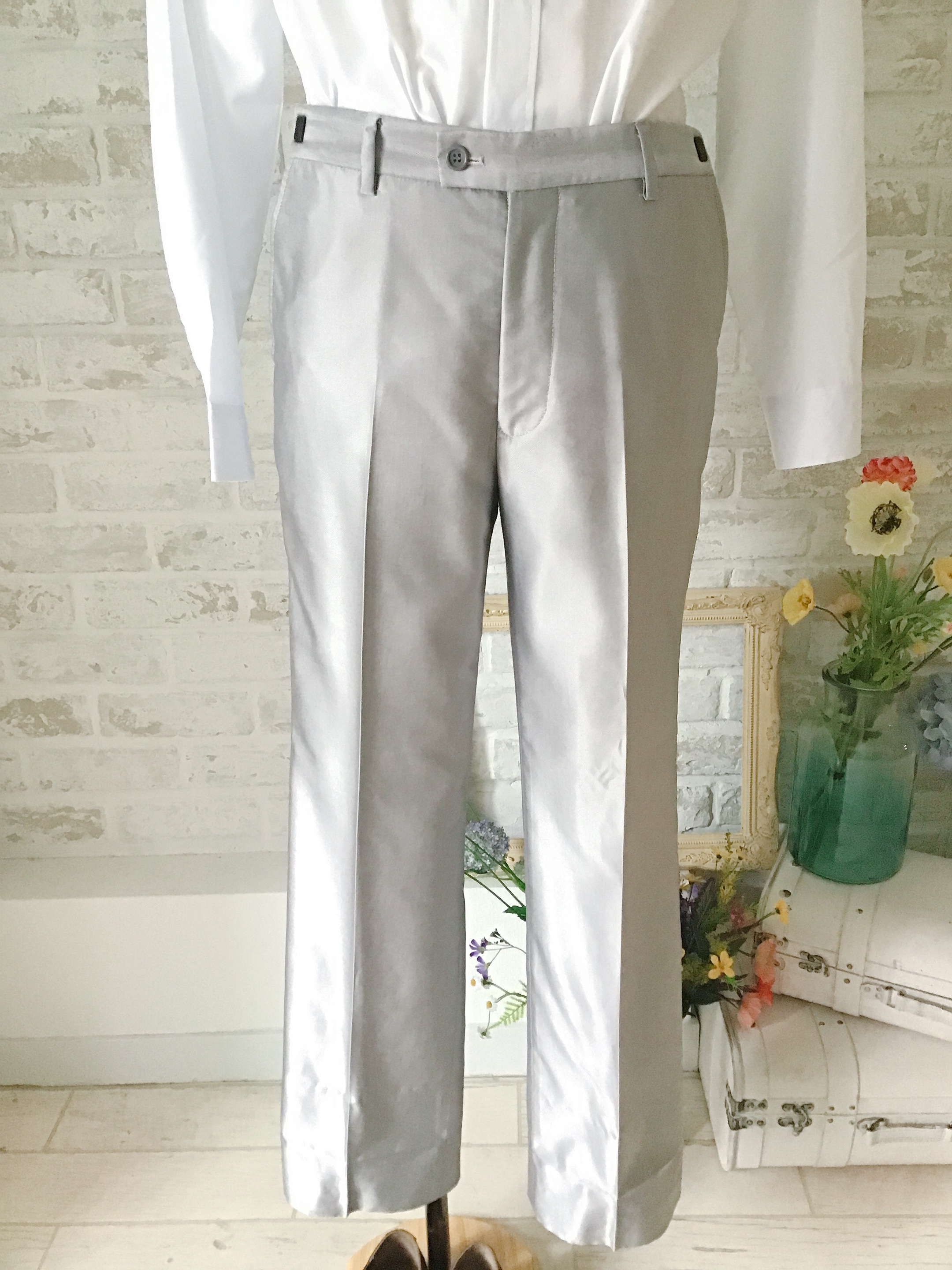 グレー光沢タキシードパンツ