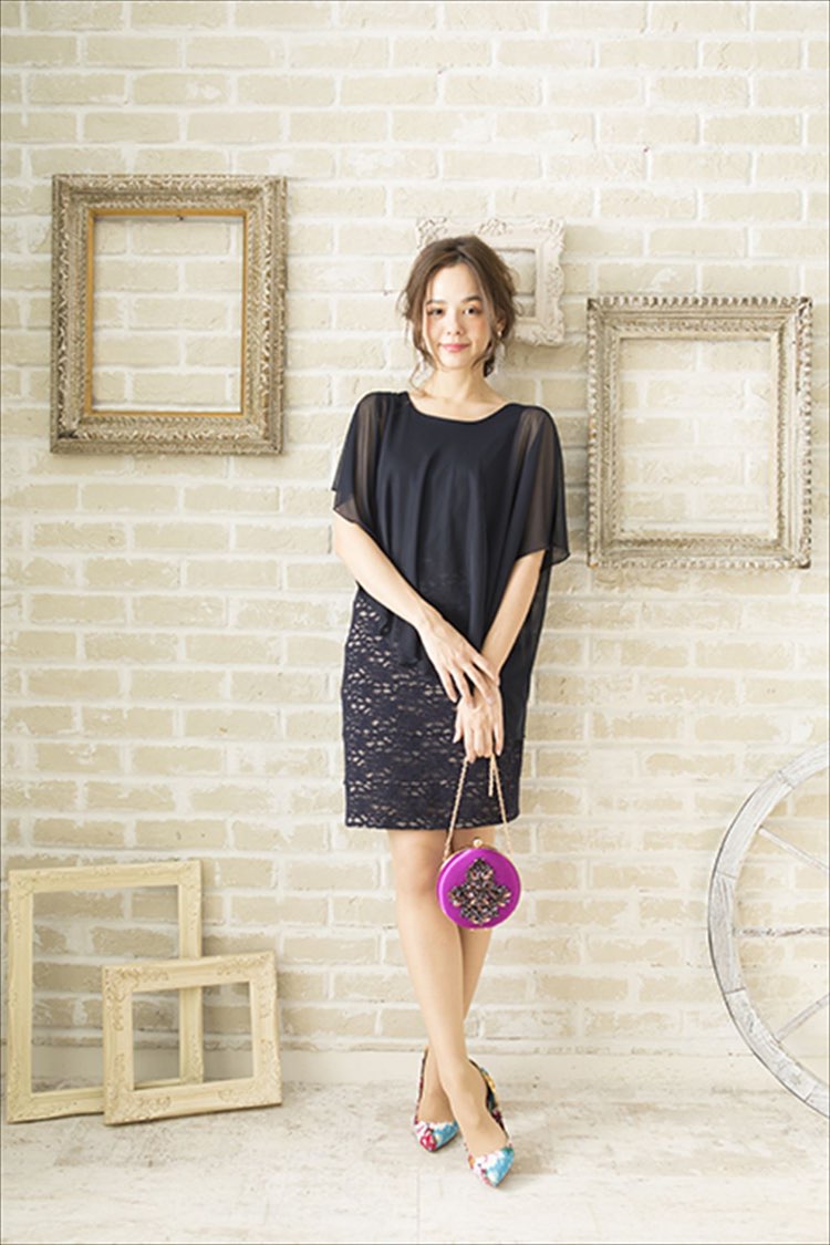 ラベンダー胸元レース柄スカートチュール切り替えミ...