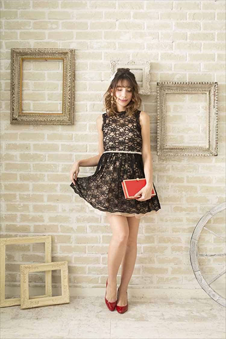 ライトグレー×ベビーピンクの全レースミニベアドレス