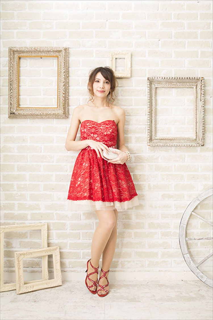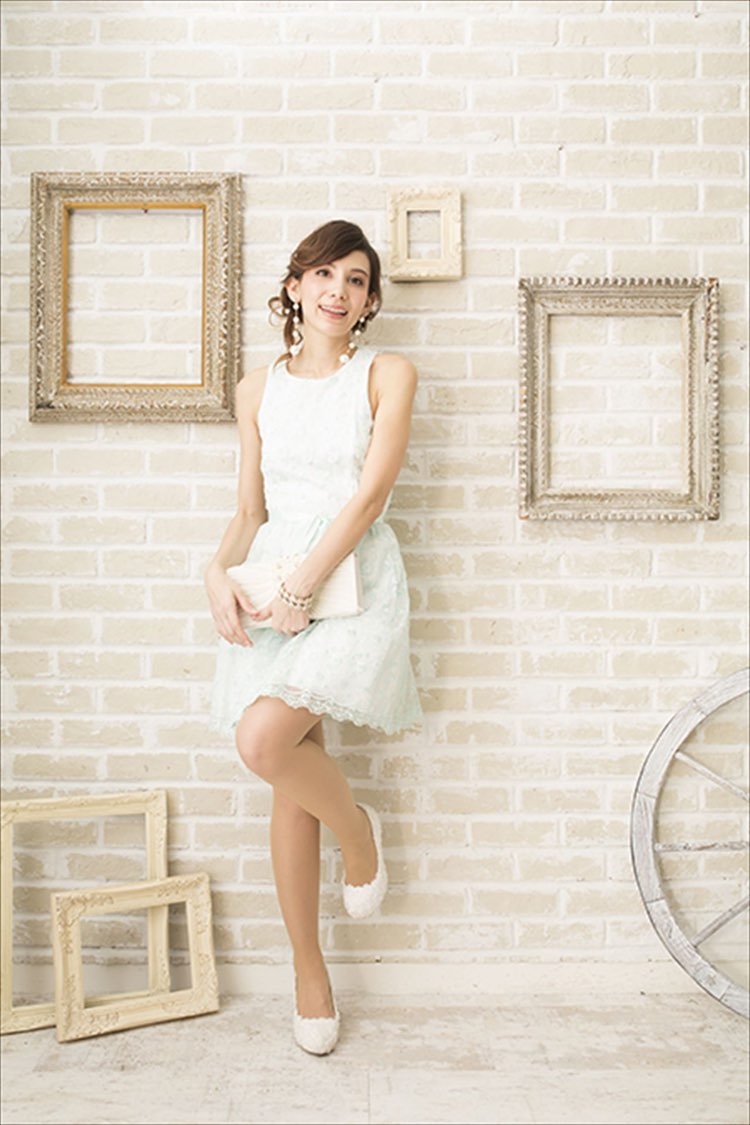 2WAY肩有ウエスト&胸元ビジュードレス(ネイビー)
