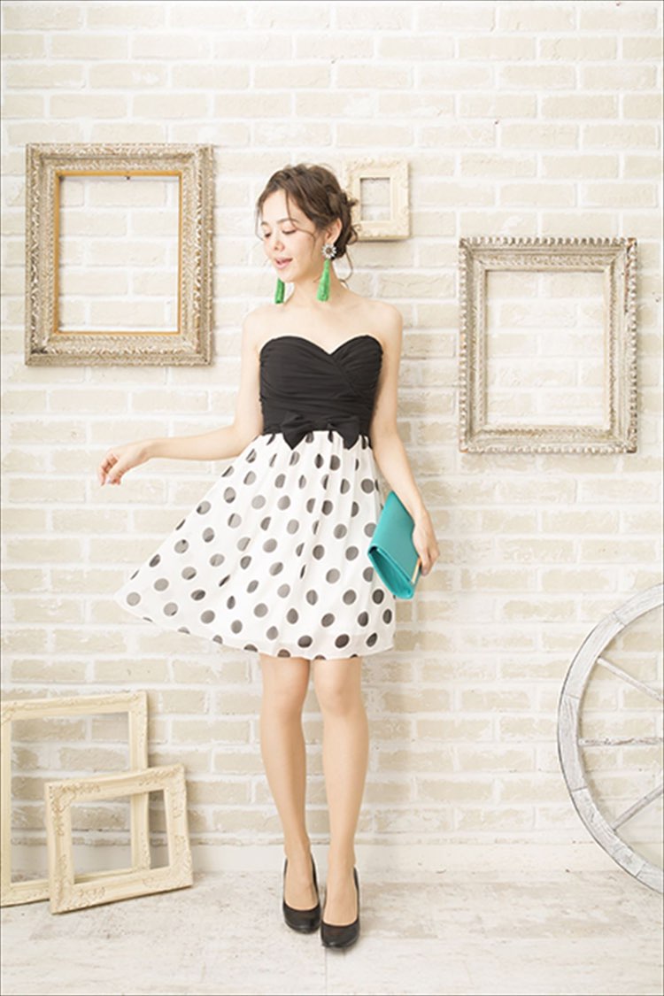 バルーンスカートリボンデザインストレッチブラックミニベアドレス