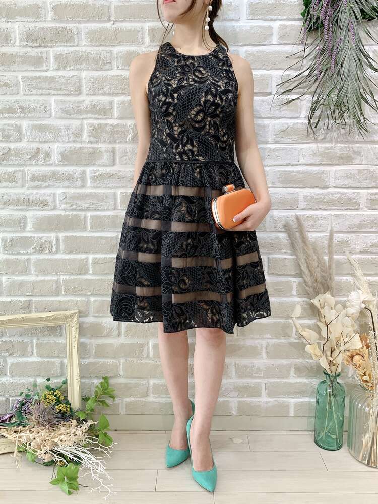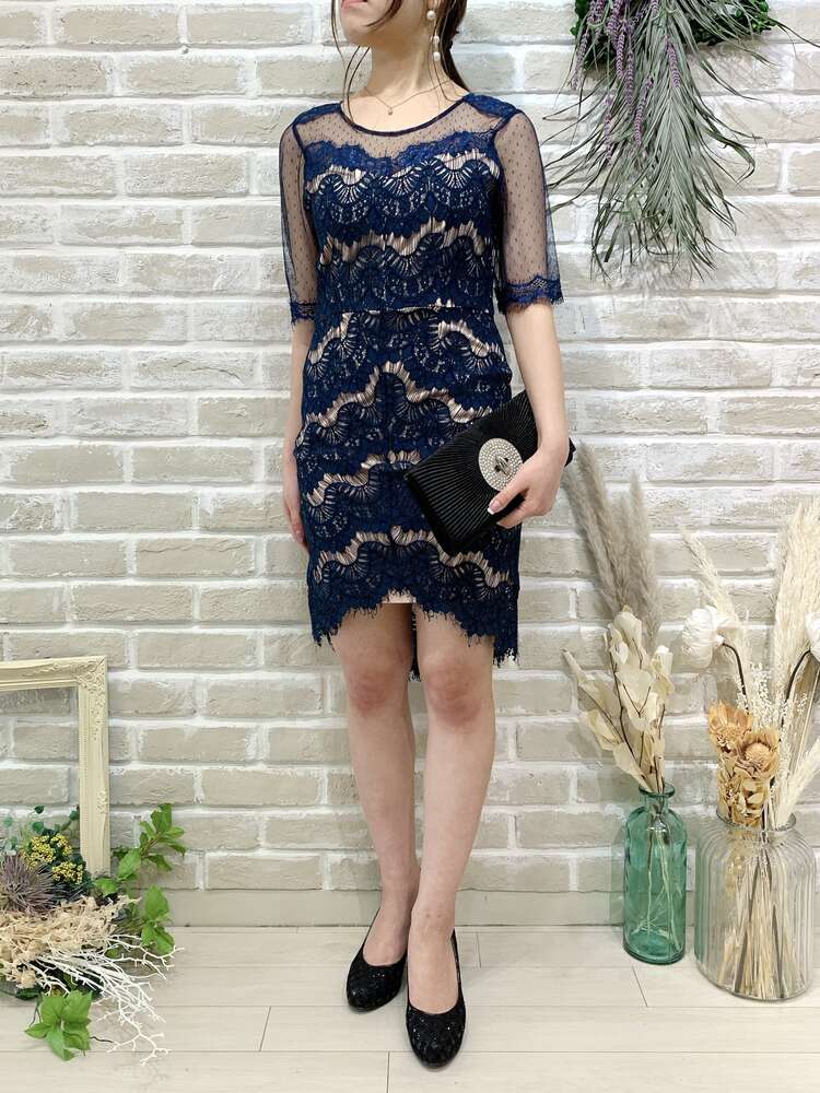 ネイビーイレヘムシースルーレースタイトミニドレス