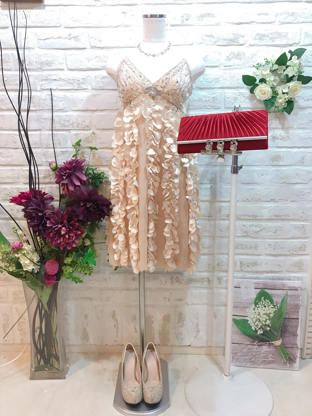 シャンパンゴールドスカート花ビラキャミソールドレ...