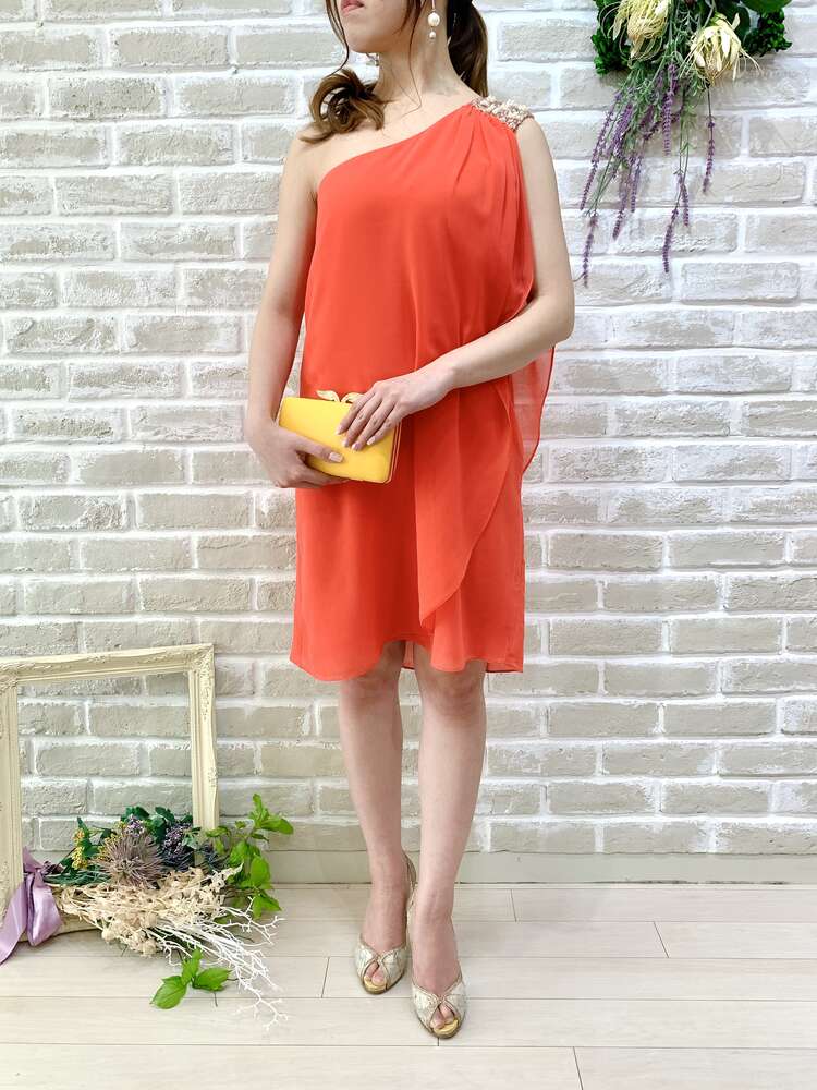 BCBGMAXAZRIA オレンジイレヘムシフトドレス