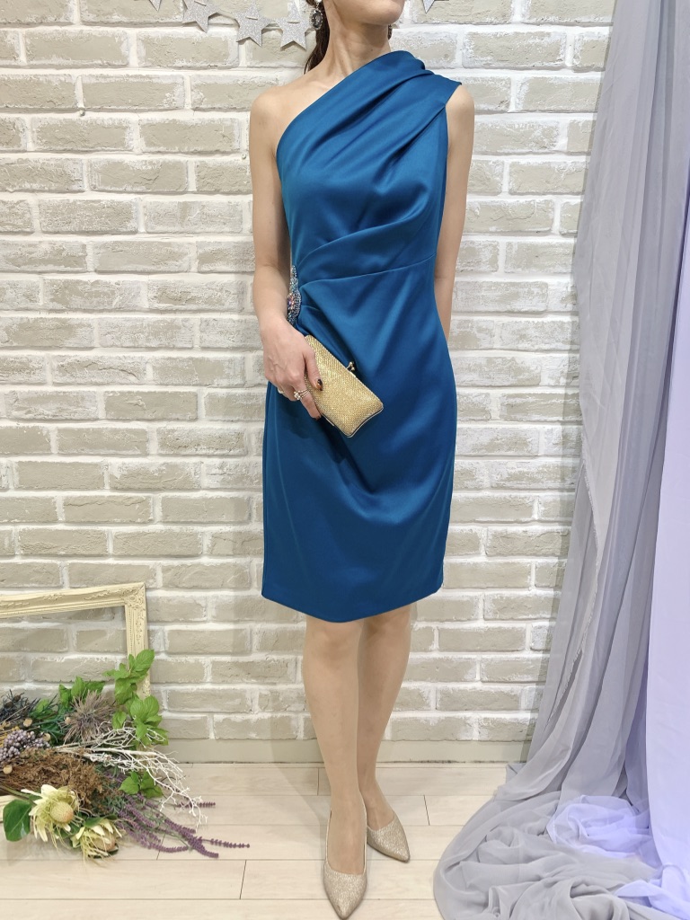 Eliza J ブルーグリーンタイトワンショルダードレス