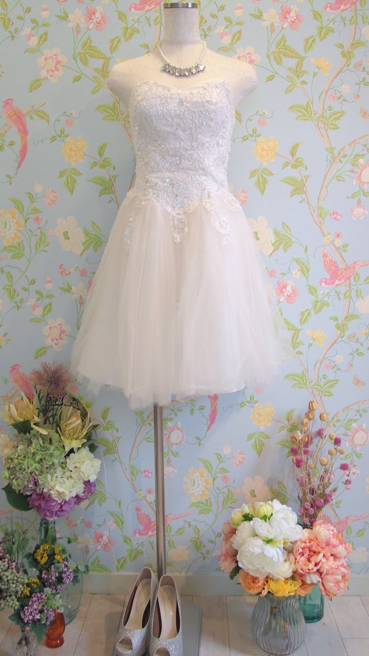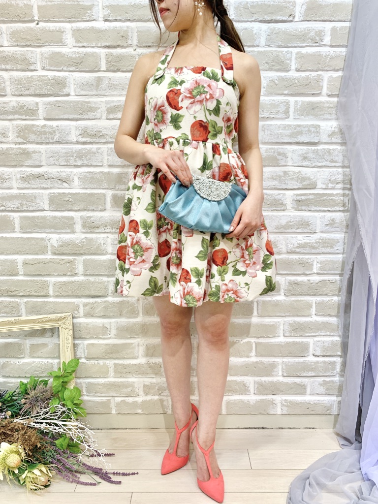 ホワイト×パステルブルーバイカラーフラワーベアドレス