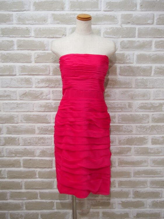 ★Monique Lhuillier ホットピンクランダムプリーツチューブドレス