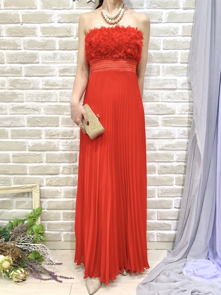 アプリコットビジュー付きアメリカンスリーブロングドレス