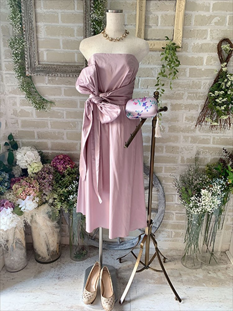 ラベンダーうしろ編み上げブライズメイド対応ロングベアドレス