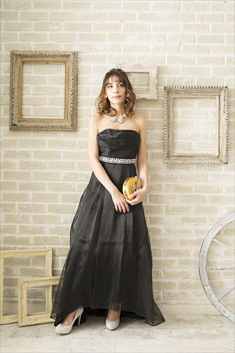 ブラック×ホワイトボーダーウェストビジュー付きAラインドレス
