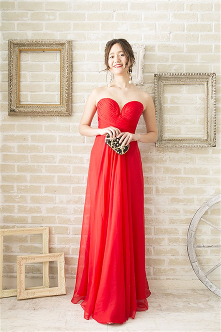 鮮やかレッドハートカットシフォンAラインロングドレス