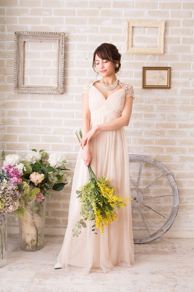 ベージュバックレースエンパイアドレス