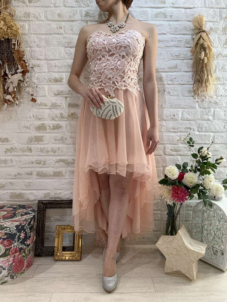 胸元ビジューハートカットロングベアドレス(ピンク)