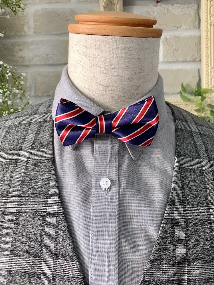 赤ネイビーホワイトレジメンタルチョウネクタイ