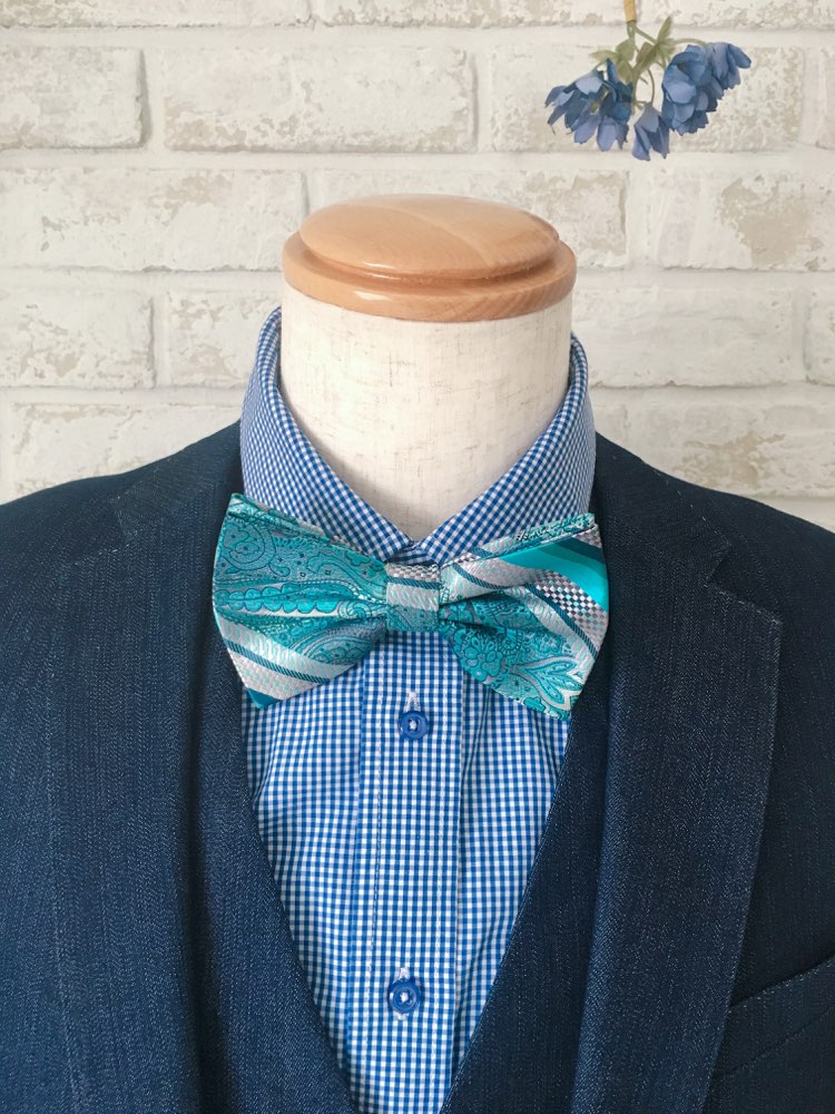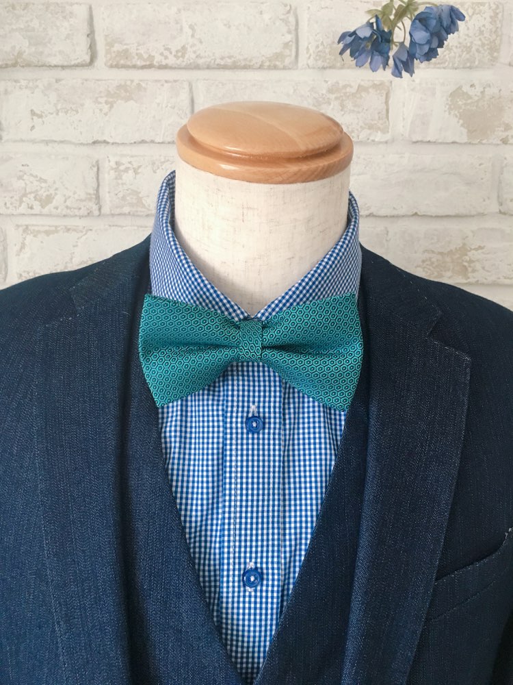 サテンネイビー×グリーンストライプ蝶ネクタイ