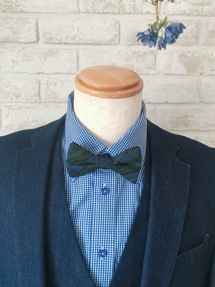 イエロー×ブルーチェック蝶ネクタイ