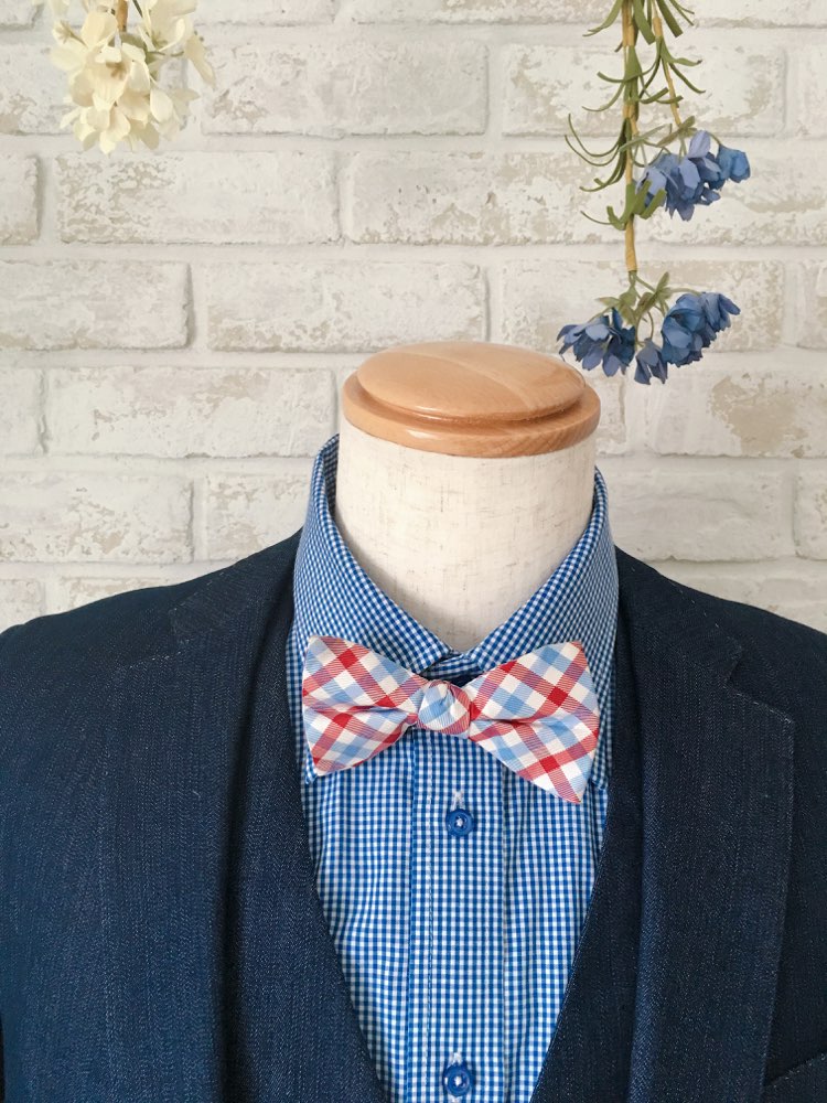 レッド×ブルーチェック蝶ネクタイ